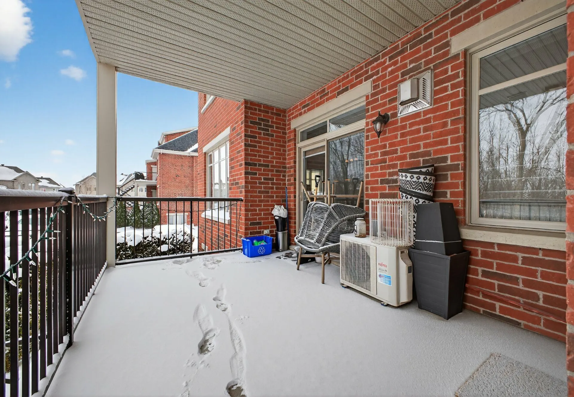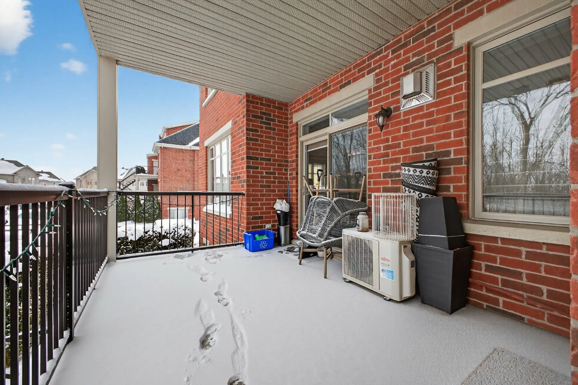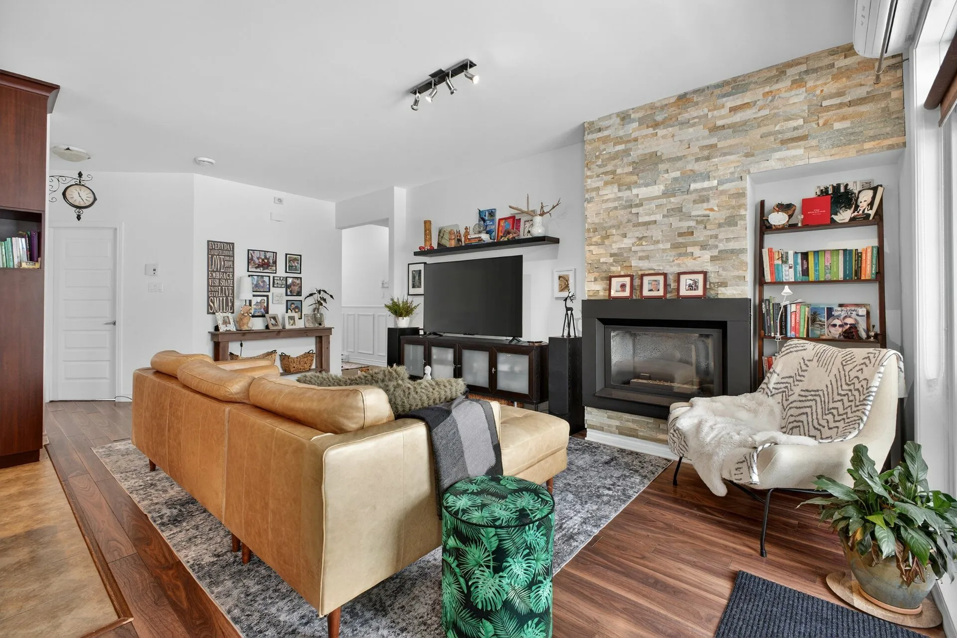 Beautiful modern open-concept condo located on a quiet, low-traffic street. Bright living area with large windows and a gas fireplace creating a warm atmosphere. Elegant and functional kitchen with ample storage, ceiling-height cabinets, and a large central island, ideal for entertaining family and friends. Two generously sized bedrooms, bathroom with a separate shower, private entrance, and two parking spaces. Large private balcony with no direct view of neighboring condos. Prime location close to services, shops, schools, and the Candiac train station. A must see!
