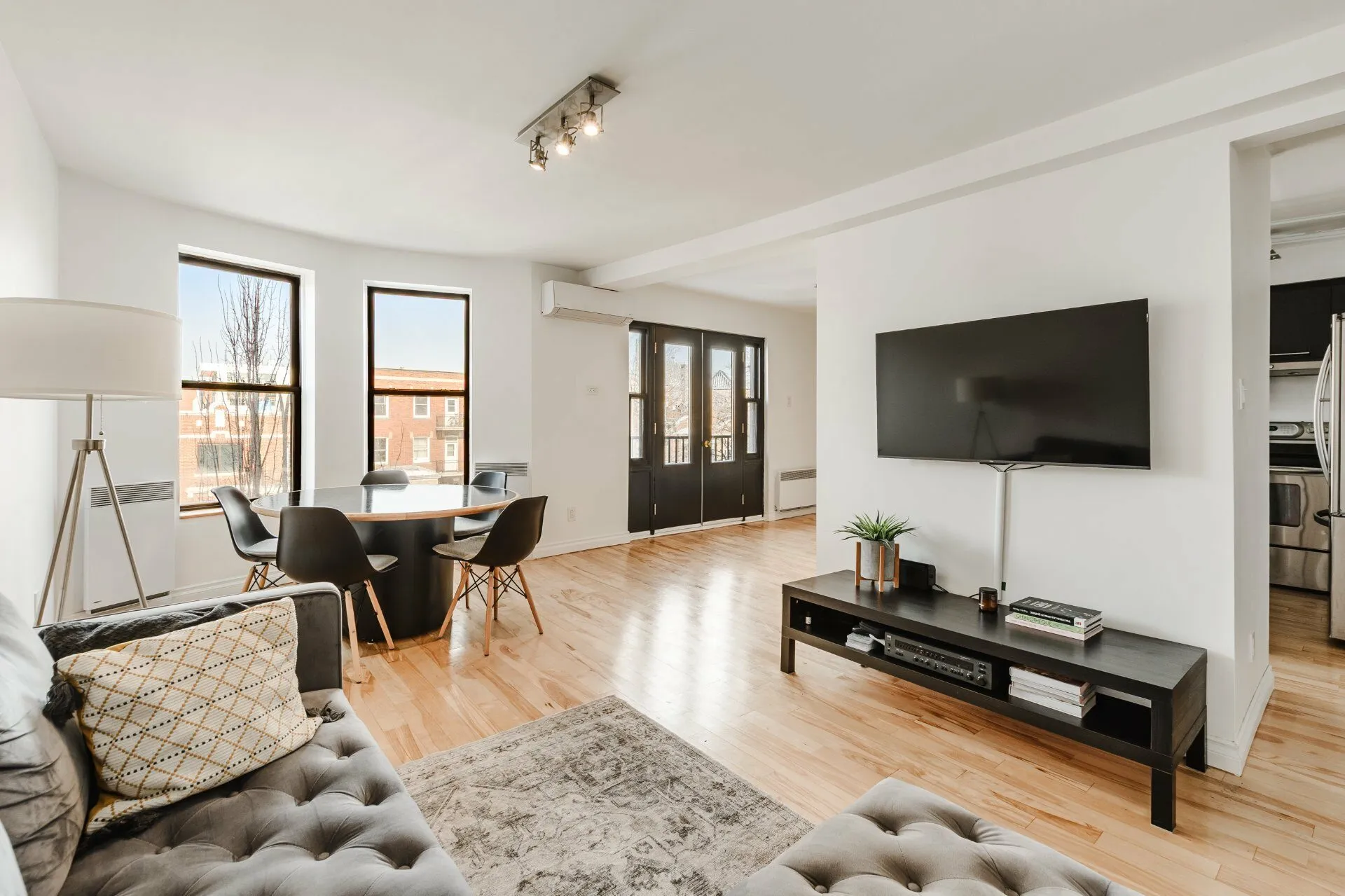 EXCEPTIONAL CONDO NEAR PETIT LAURIER - BRIGHT CORNER UNIT. Condo combining charm and functionality. Open-concept living room, dining room, and kitchen. Hardwood floors. Numerous windows on three sides. Ideal division of rooms. Spacious and bright living room. Ultra-functional kitchen with plenty of storage. Private balcony with unobstructed view. Live in a vibrant and highly sought-after location: within walking distance of the metro and Laurier Park; a few steps from the charming local shops, cafés, and gourmet delights of the avenue of the same name. Experience the best of neighborhood life!