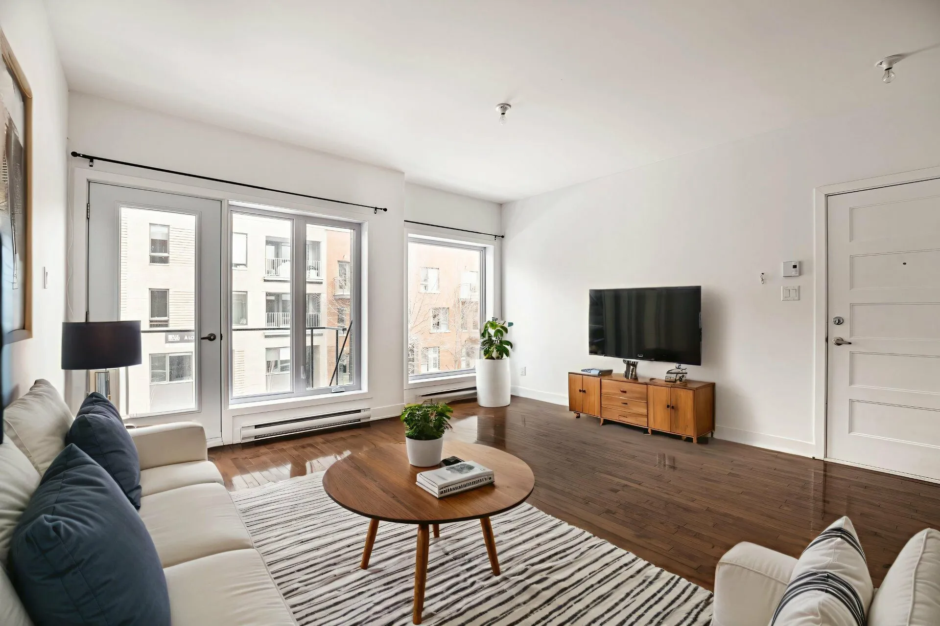 EXCEPTIONAL CONDO IN THE SOUGHT-AFTER MILE END DISTRICT. Open-concept living space combining a living room, kitchen, and dining area. Large windows provide exceptional natural light. Superior soundproofing. Functional kitchen island. Spacious bathroom. Additional storage. Live in the vibrant heart of Mile End: close to Laurier metro station, numerous restaurants, cafes, and urban attractions. A visit will charm you!