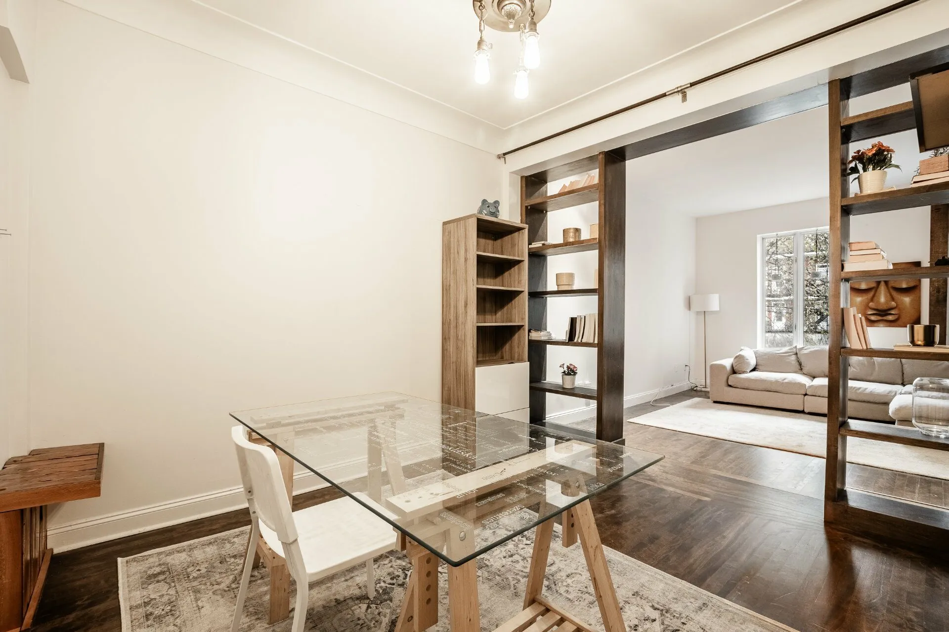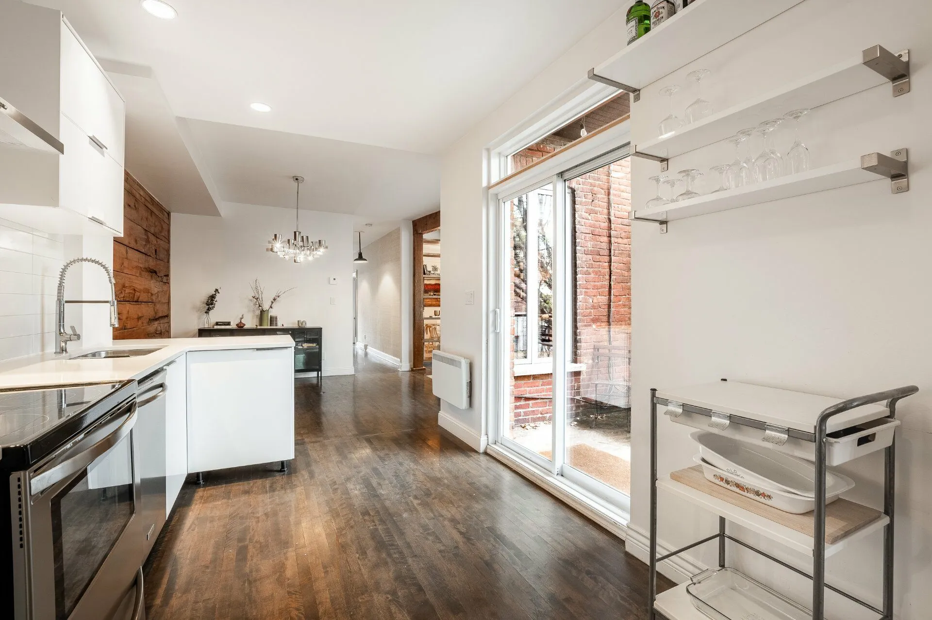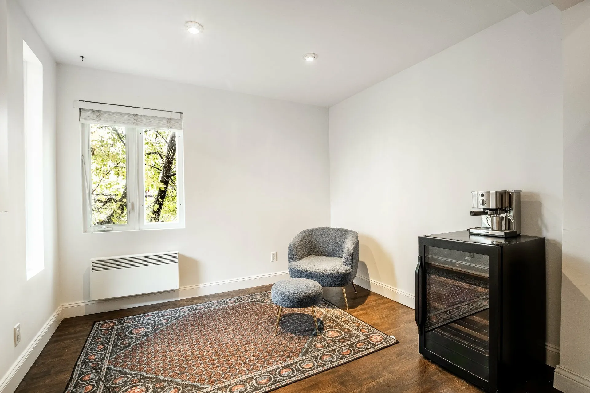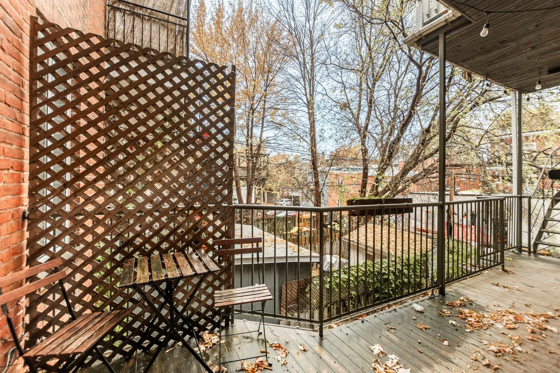 CHARMING CONDO NEAR LAURIER PARK. Beautiful natural light. Open layout combining living room, dining room, kitchen, and boudoir. Generously sized bedroom + office space. Possibility of a second bedroom in the boudoir area. Office separated from the living room by a built-in bookcase. Bathroom with glass shower + stackable washer/dryer. Hardwood floors. Private deck adjacent to the kitchen + front balcony. Parking. Located within walking distance of the shops on Mont-Royal Avenue, La Fontaine Park, and the urban pleasures of the Plateau Mont-Royal.