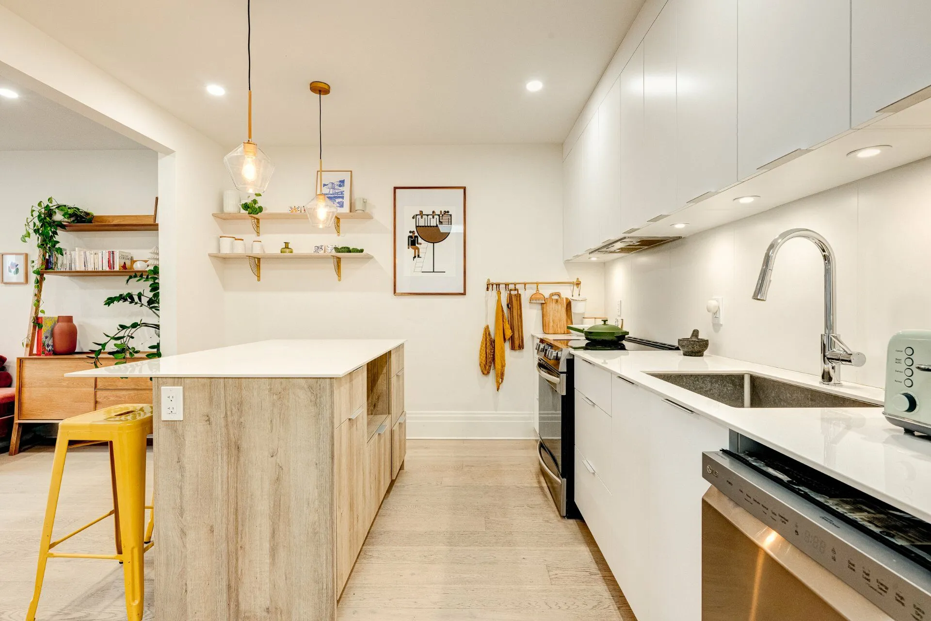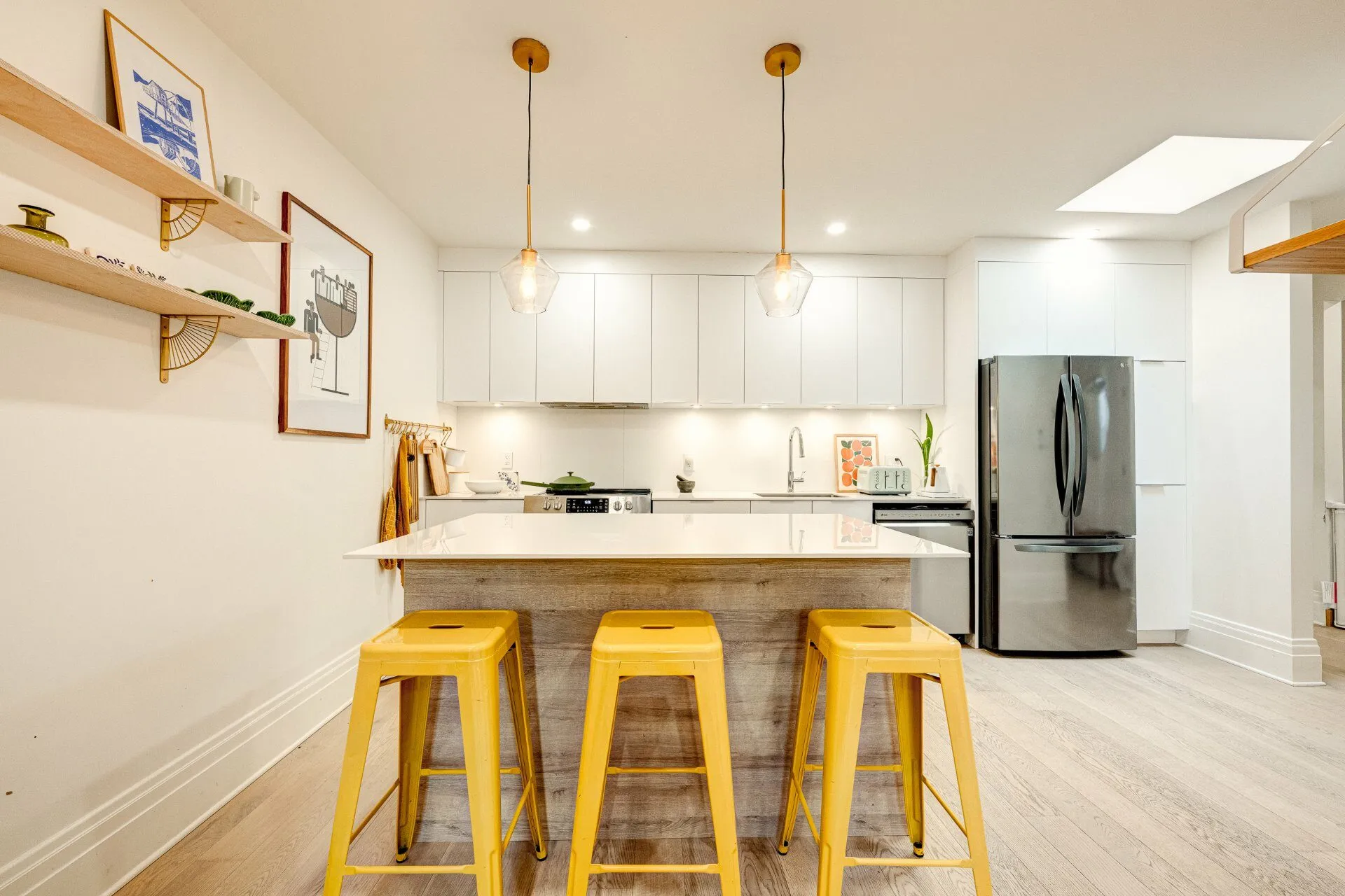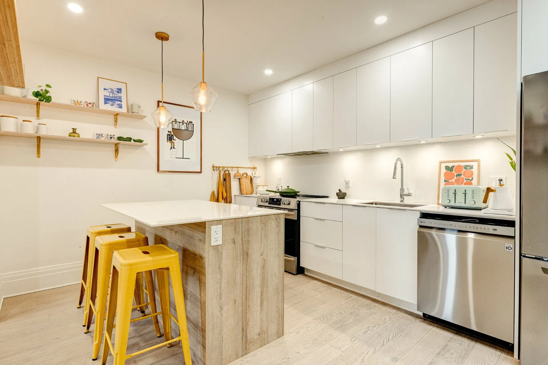 BEAUTIFULLY RENOVATED CONDO - UPPER FLOOR. Vast open concept living space. 2 bedrooms including a master suite with integrated bathroom and walk-in closet. Beautiful natural light - abundant windows. Kitchen with large center island. Refined bathroom. Walking distance to Jeanne-Mance Park, Mount-Royal, the metro, restaurants and delicatessens. Do not miss this rare opportunity!