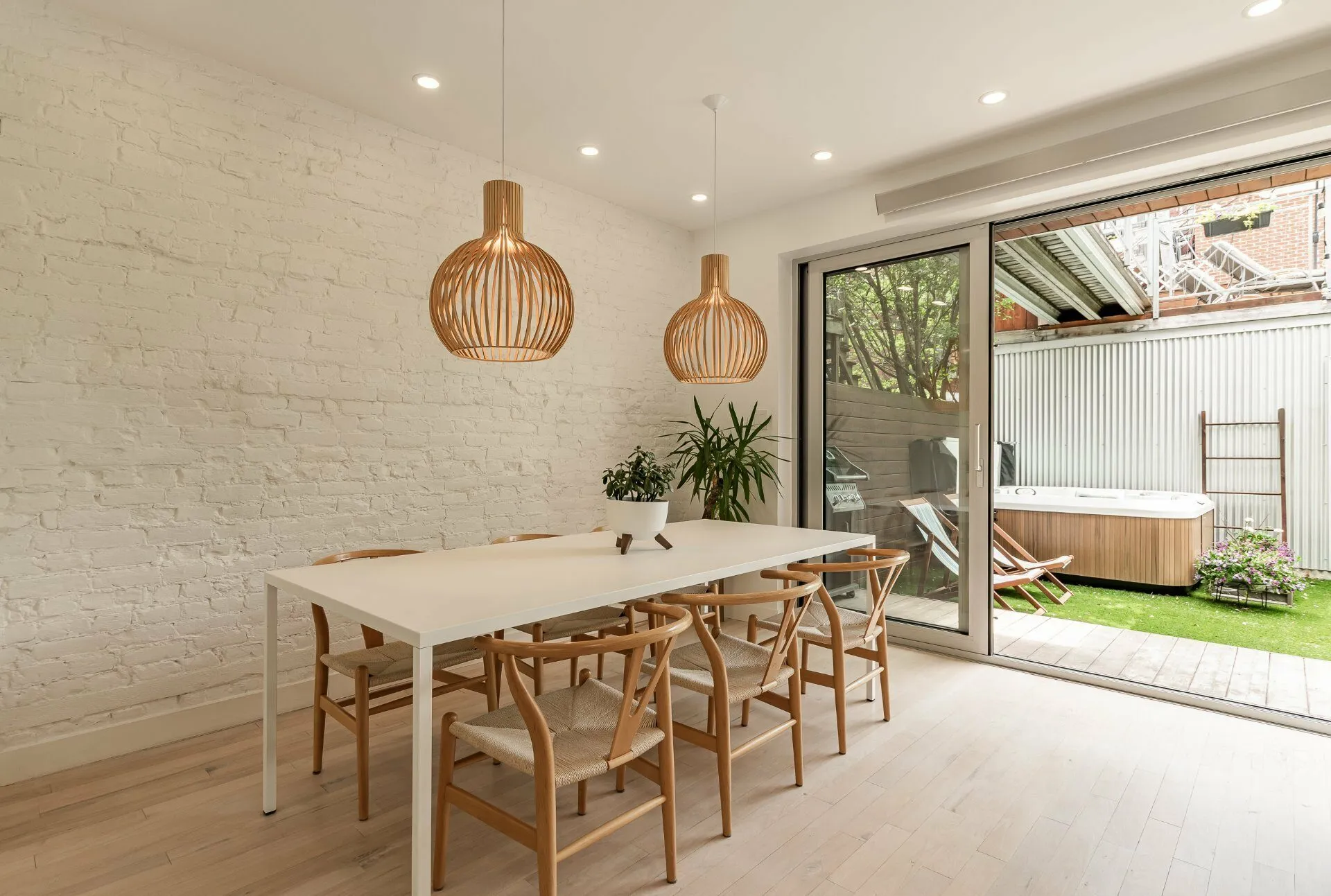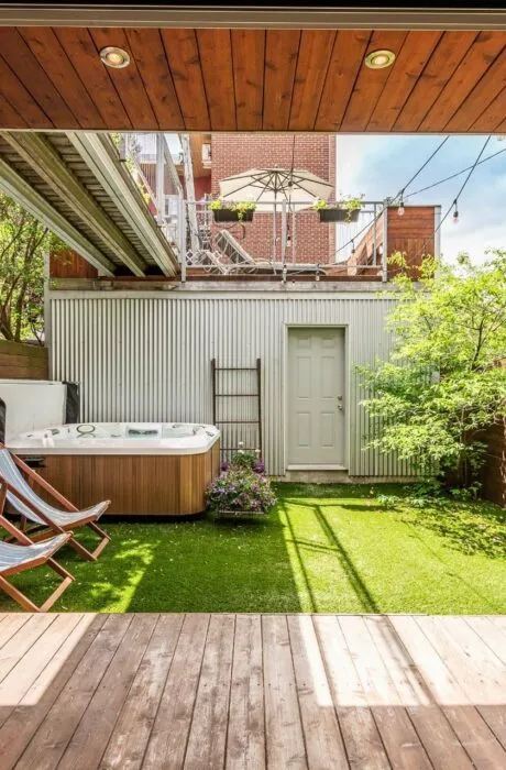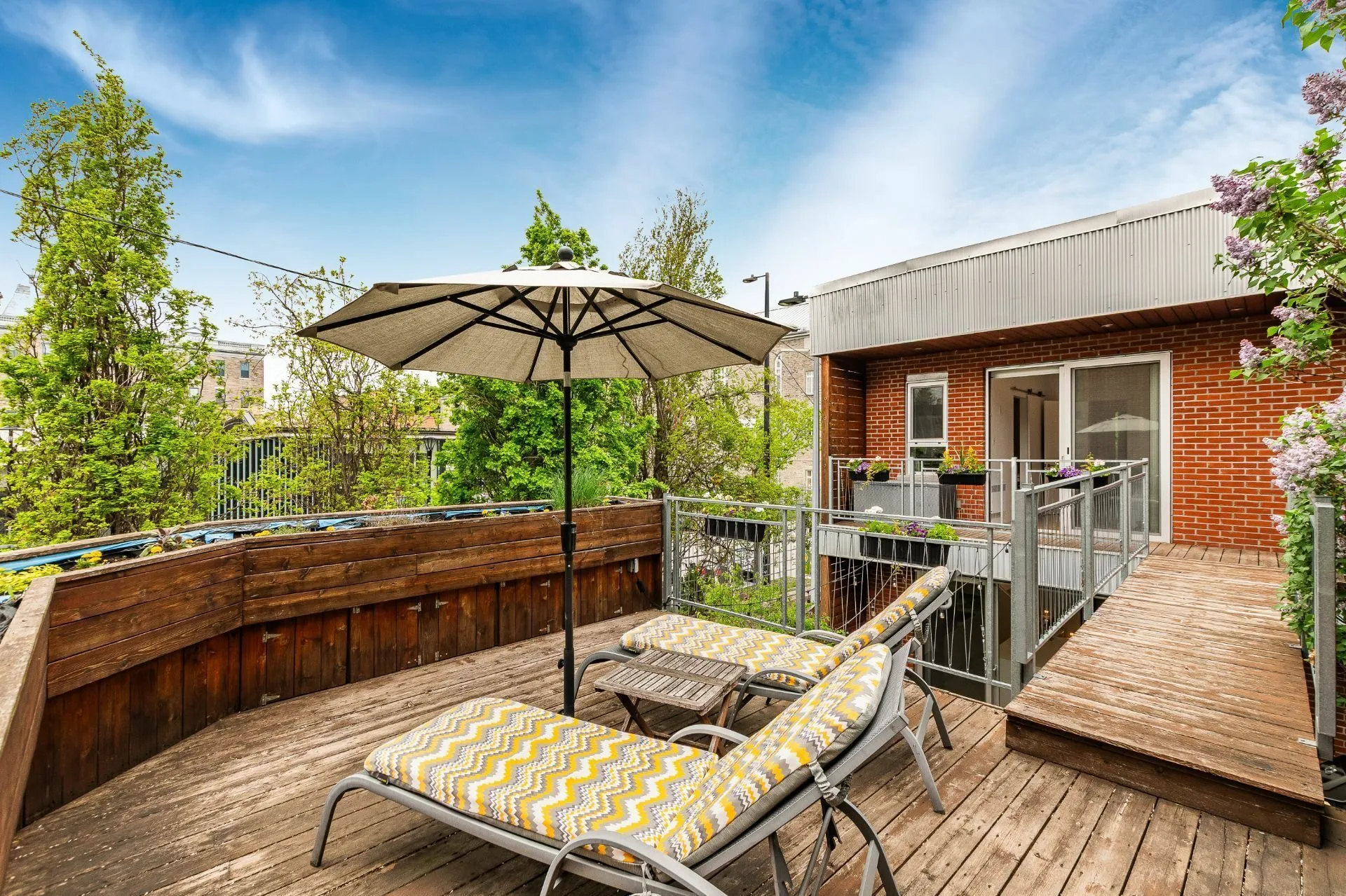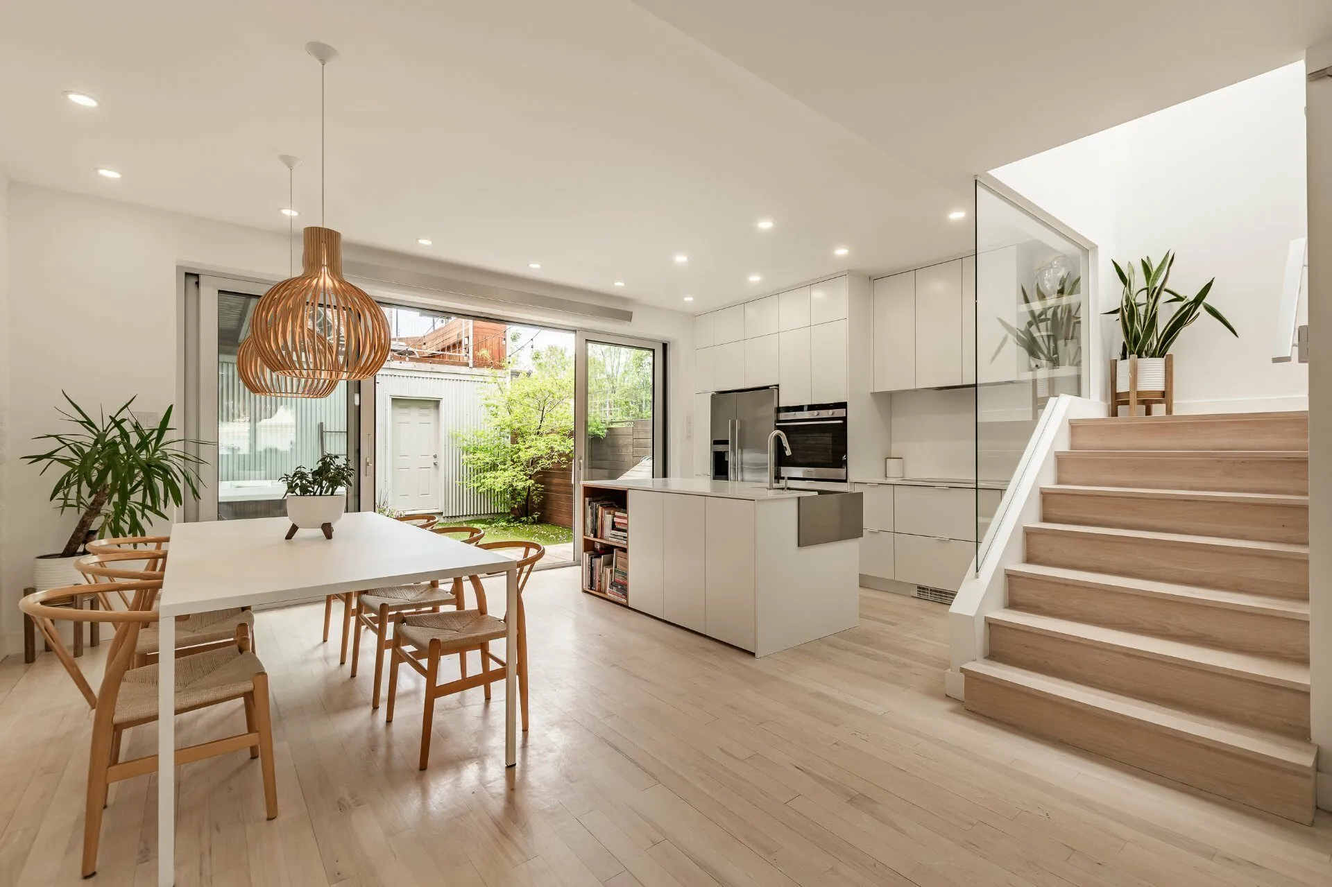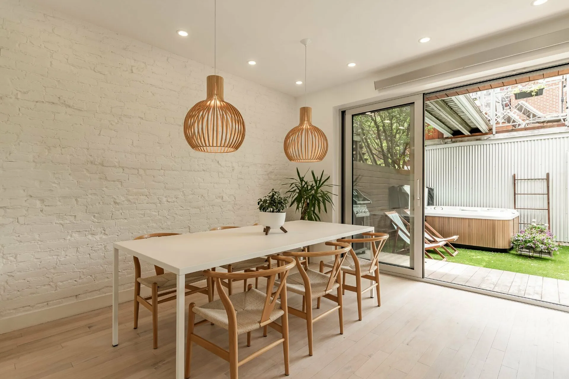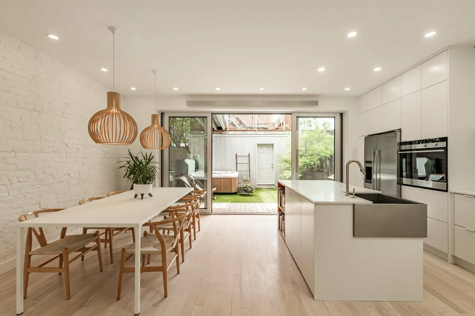 PURE PLEASURE. Remarkable brightness - architectural window on the first floor opening onto the backyard. Open-plan living spaces, an elegant combination of brick walls and wood floors. 3 bedrooms upstairs, including a master suite with walk-in closet and adjoining terrace. Modern kitchen with central island. Plenty of storage space. 2 bathrooms with heated floors. Laundry room. A haven of tranquility in the heart of the Plateau: enjoy a west-facing grassy courtyard with jacuzzi, roof terrace and one-car garage. Close to the Mont-Royal metro station and the neighborhood's gourmet addresses.
