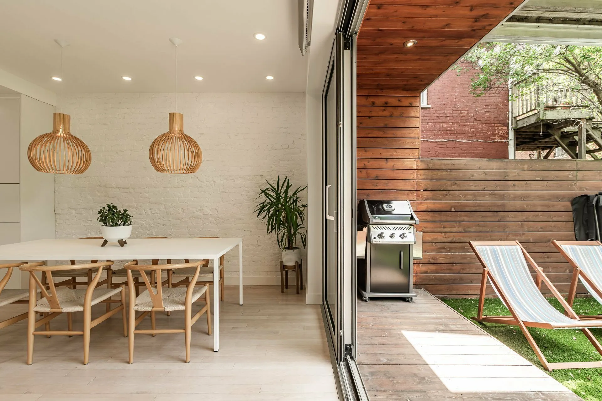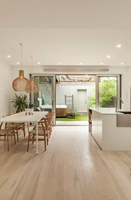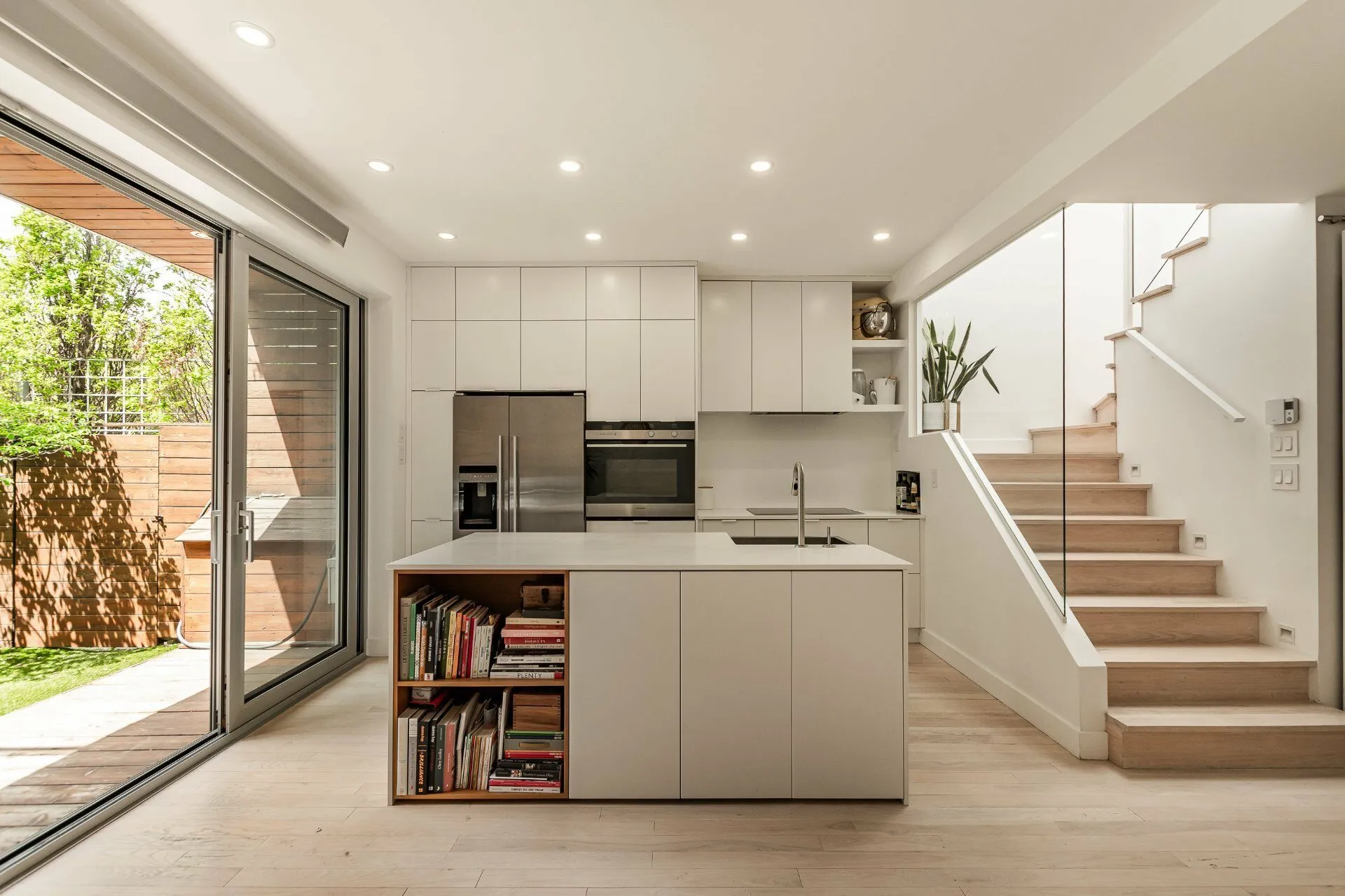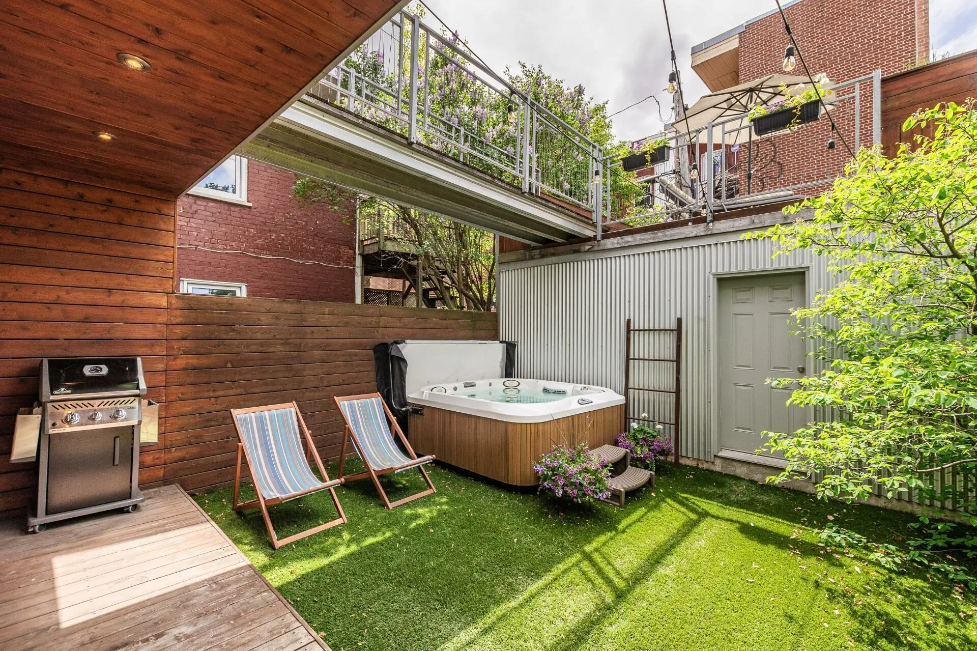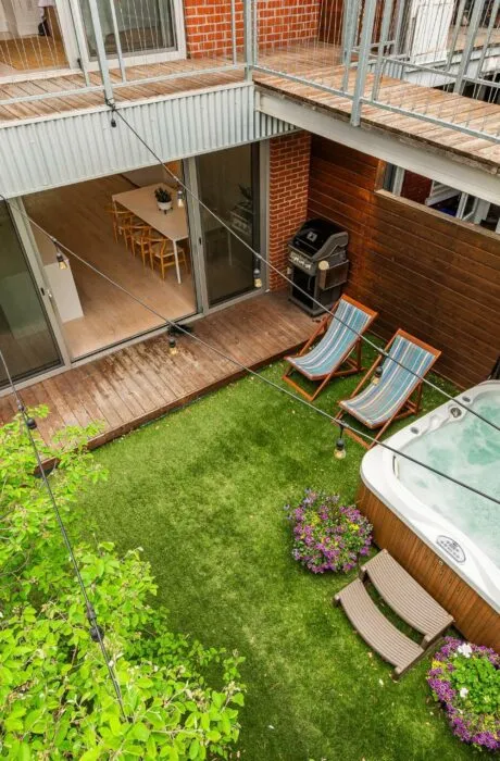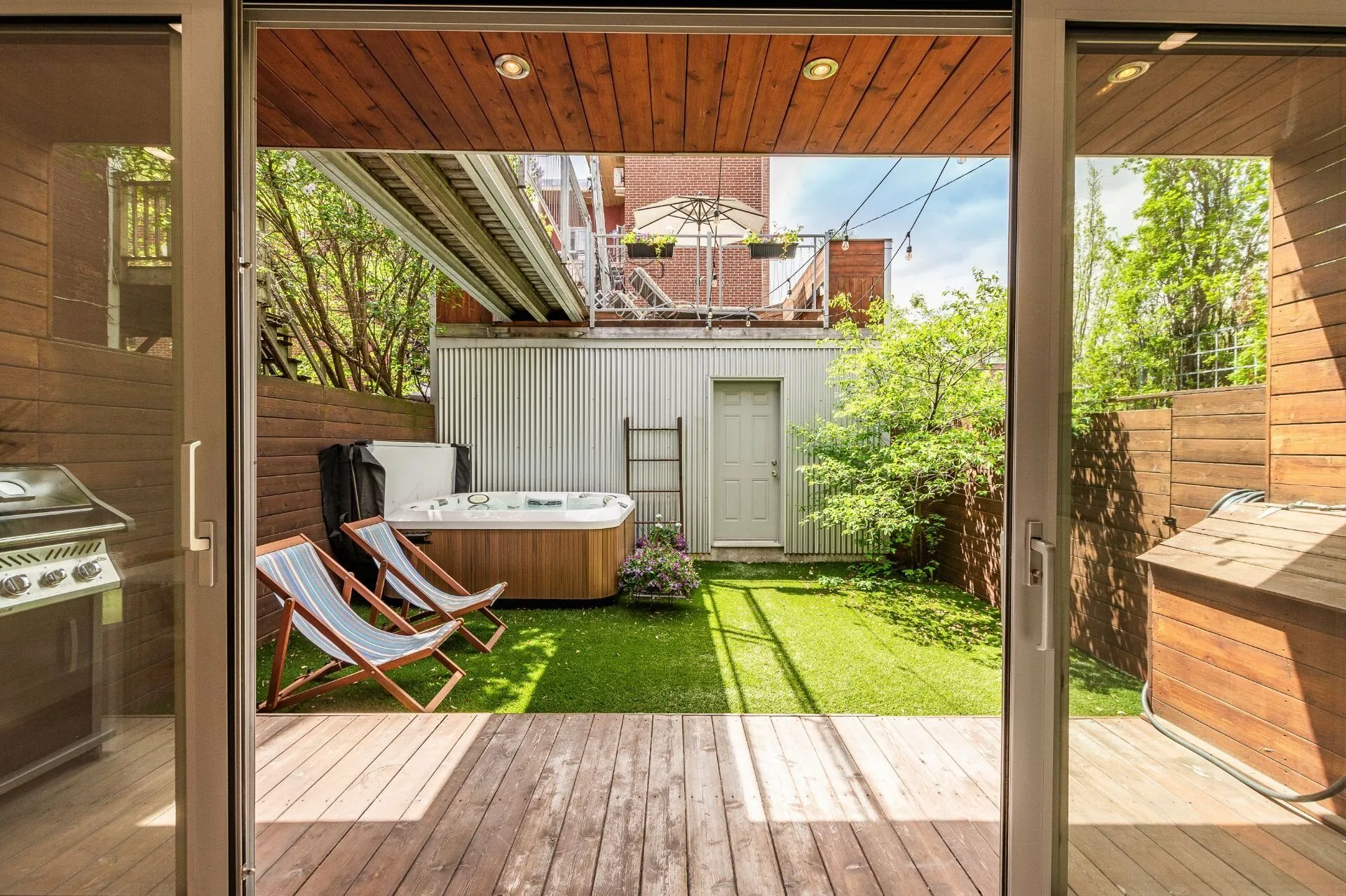PURE PLEASURE. Remarkable brightness - architectural window on the first floor opening onto the backyard. Open-plan living spaces, an elegant combination of brick walls and wood floors. 3 bedrooms upstairs, including a master suite with walk-in closet and adjoining terrace. Modern kitchen with central island. Plenty of storage space. 2 bathrooms with heated floors. Laundry room. A haven of tranquility in the heart of the Plateau: enjoy a west-facing grassy courtyard with jacuzzi, roof terrace and one-car garage. Close to the Mont-Royal metro station and the neighborhood's gourmet addresses.