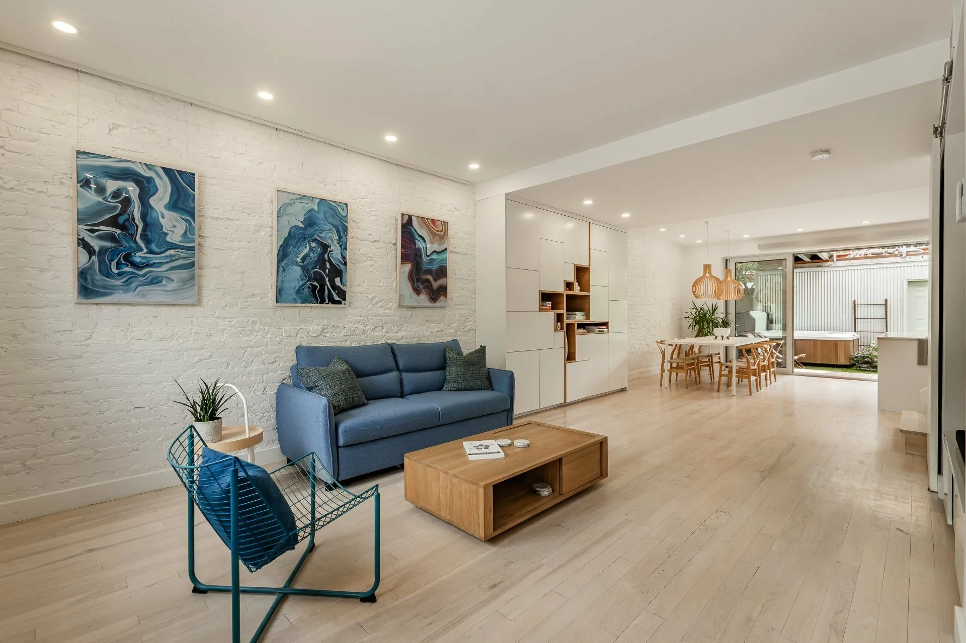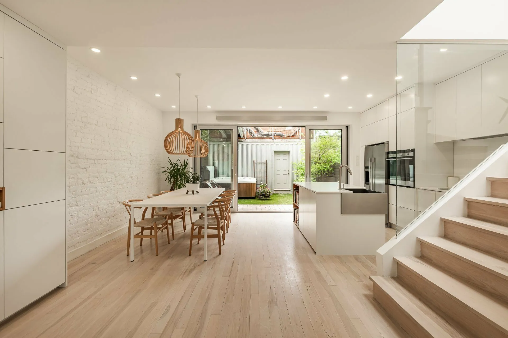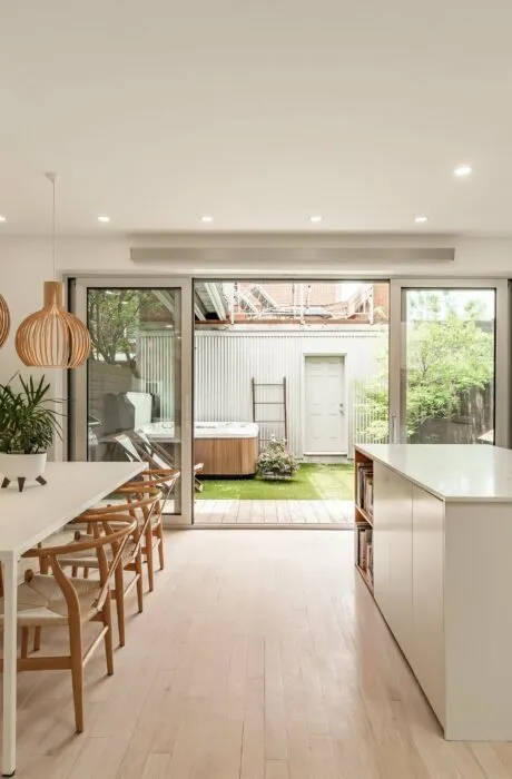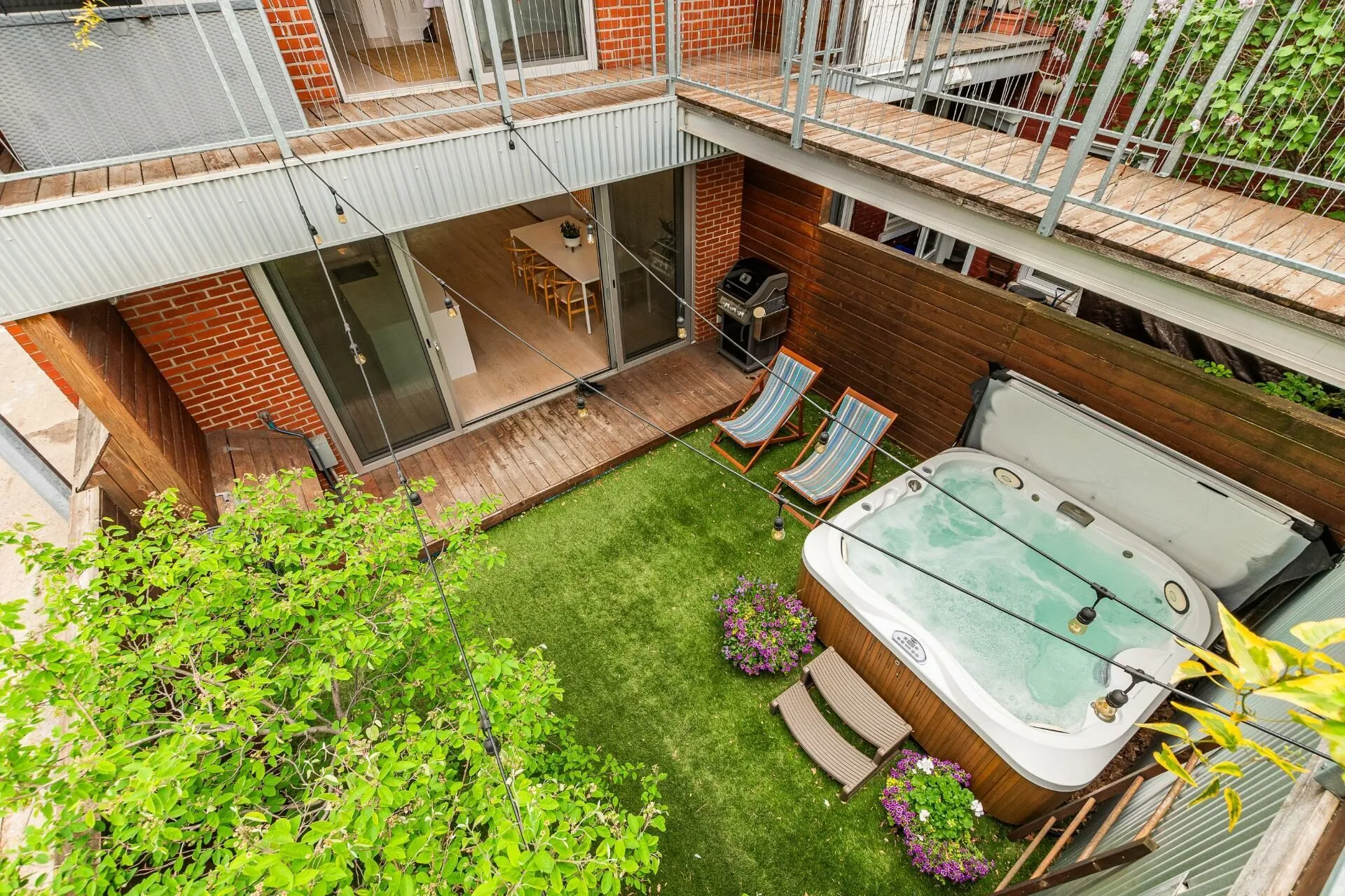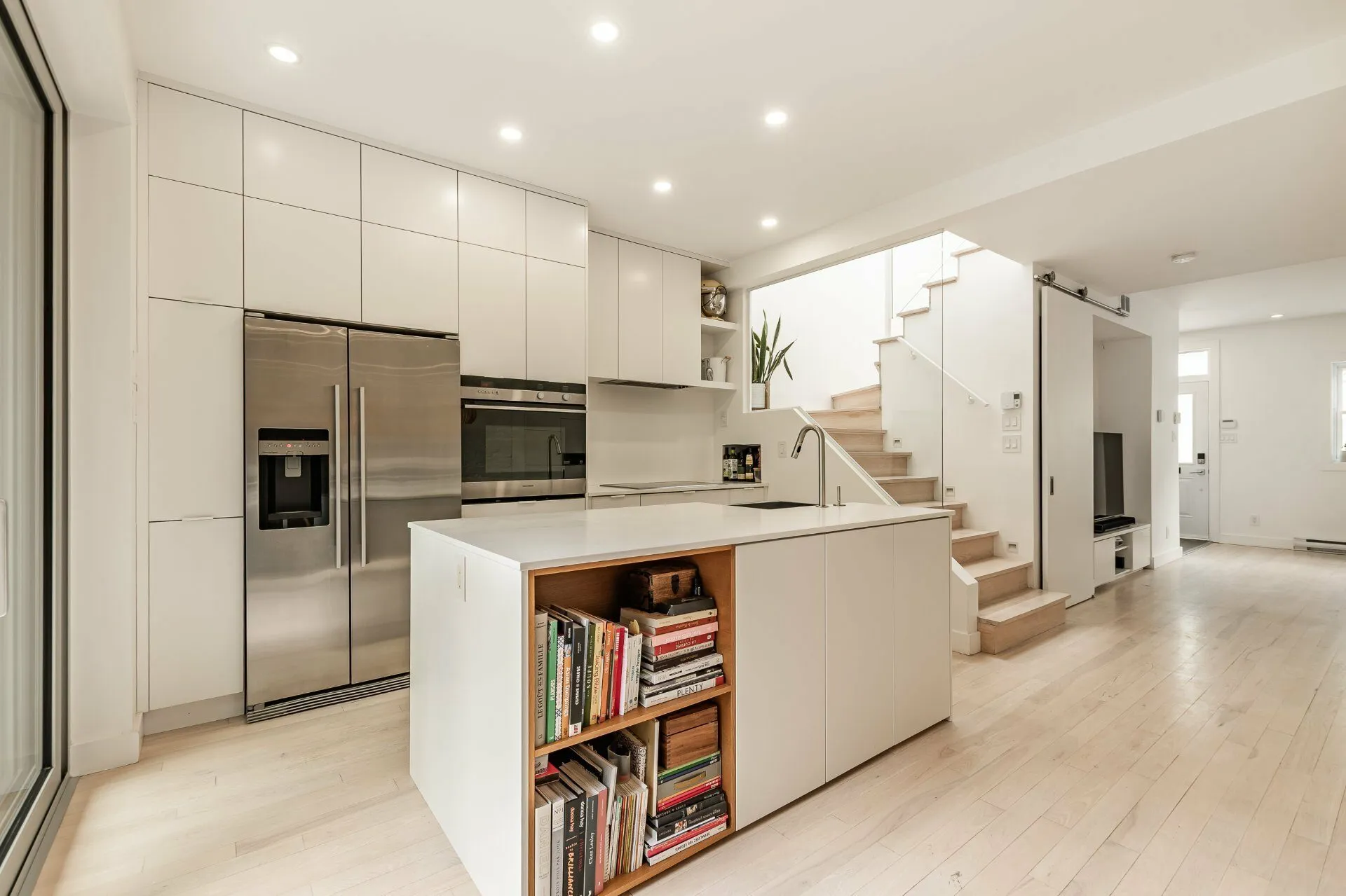 PURE PLEASURE. Remarkable brightness - architectural window on the first floor opening onto the backyard. Open-plan living spaces, an elegant combination of brick walls and wood floors. 3 bedrooms upstairs, including a master suite with walk-in closet and adjoining terrace. Modern kitchen with central island. Plenty of storage space. 2 bathrooms with heated floors. Laundry room. A haven of tranquility in the heart of the Plateau: enjoy a west-facing grassy courtyard with jacuzzi, roof terrace and one-car garage. Close to the Mont-Royal metro station and the neighborhood's gourmet addresses.