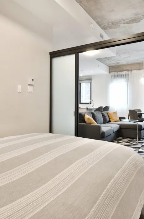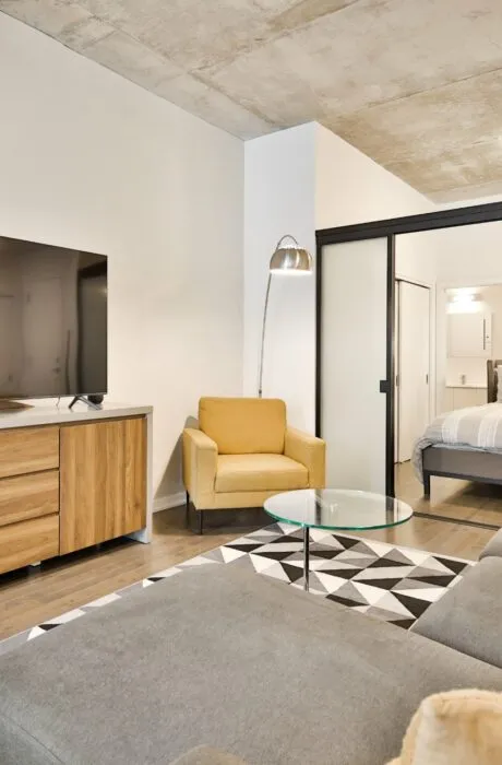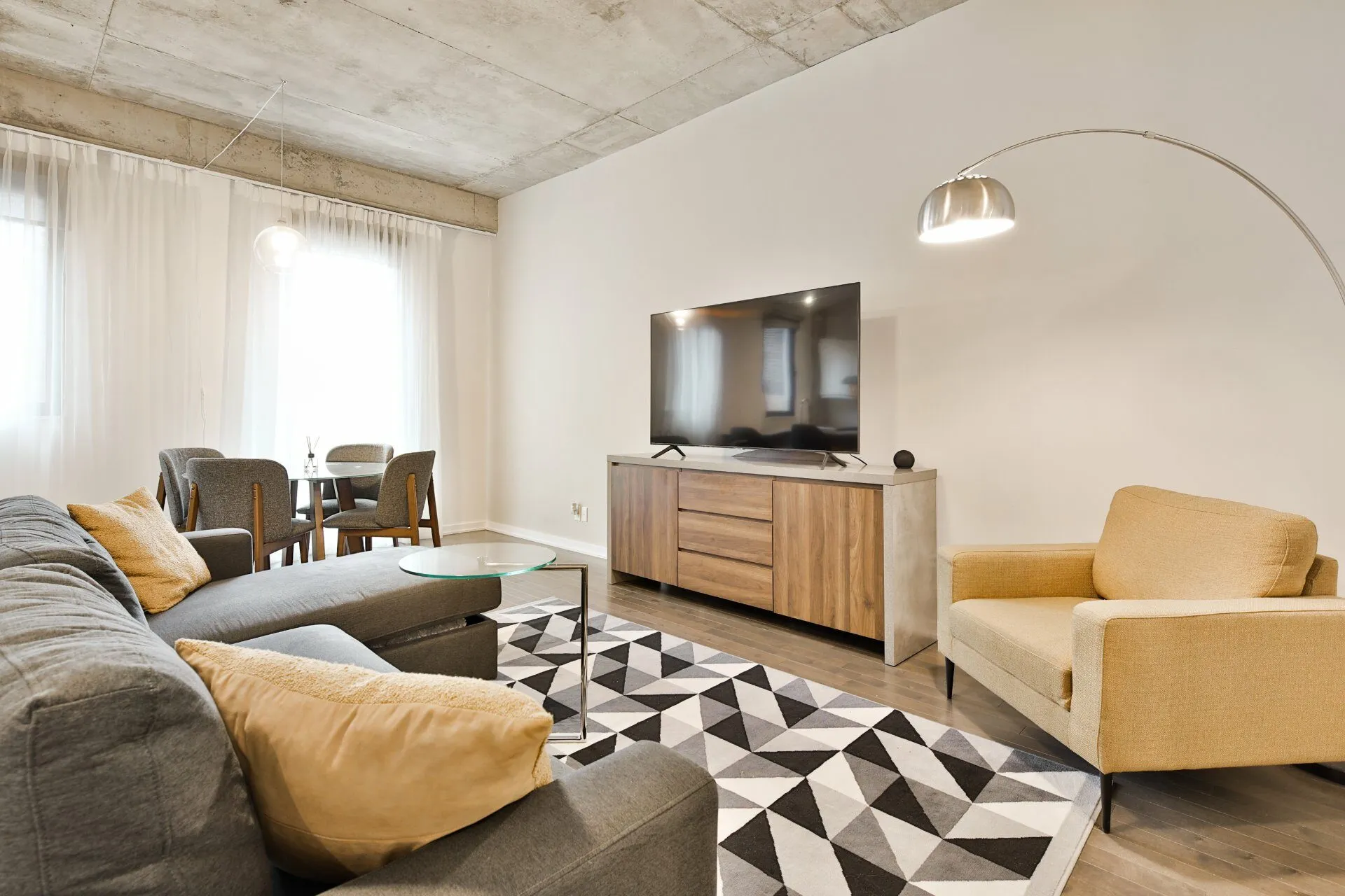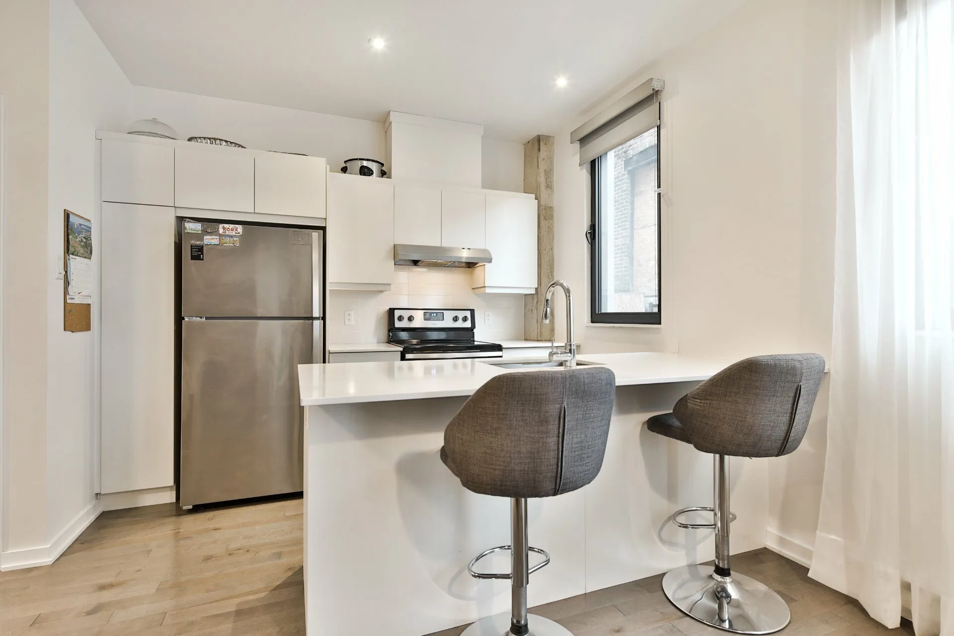 CONDO MODERNE DE STYLE LOFT AU COEUR DU PLATEAU. Unité située au rez-de-chaussée. Entièrement meublé. Belle luminosité naturelle dans l'aire de vie. Construction en béton : insonorisation supérieure. Hauts plafonds. Cuisine épurée avec îlot central. Chambre à coucher fermée avec porte coulissante. Salle de bain complète. Laveuse-sécheuse incluses. Résidez dans un emplacement prisé sur le Plateau-Mont-Royal : à distance de marche du métro Mont-Royal, du parc Jeanne-Mance, des épiceries, ainsi que des nombreux cafés et restaurants du boulevard Saint-Laurent et de l'avenue Laurier - un équilibre idéal entre dynamisme et tranquillité.Faites vite!