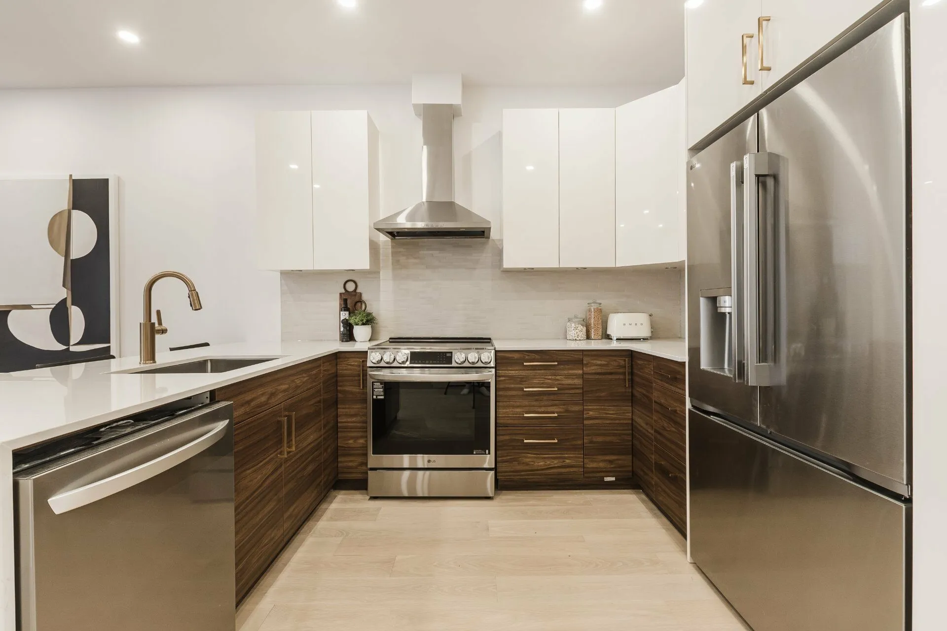 Inclusions : Cuisinière, hotte, lave-vaisselle, réfrigérateur.