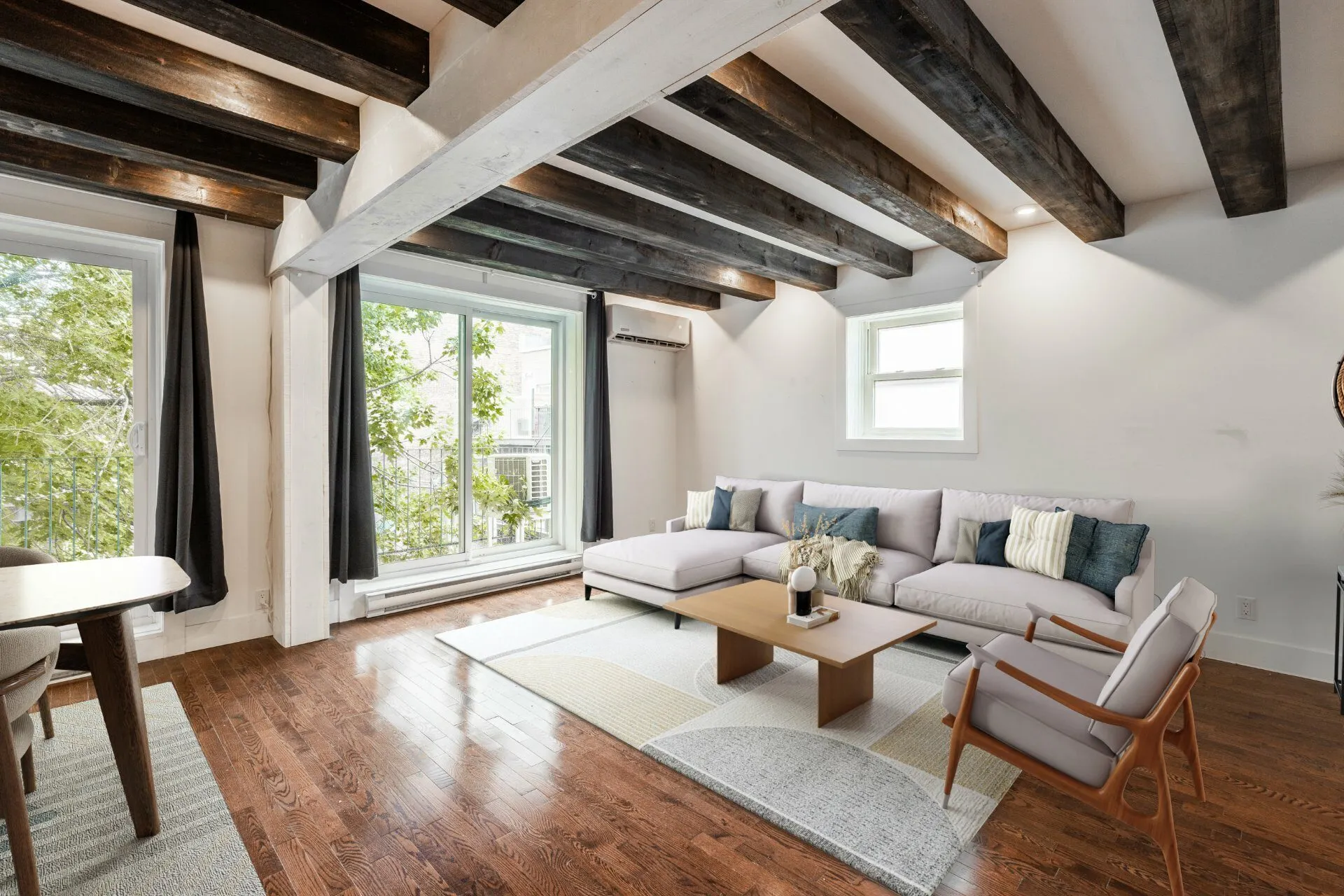 Rénovations, améliorations et plus :* Pieux de fondation et imperméabilisation réalisés par Bisson (2024)* Climatisation murale (2021)* Rénovation complète et professionnelle de la salle de bains (2022) avec carrelage sur mesure, équipements modernes et matériaux de qualité choisis pour leur durabilité et leur cohérence esthétique* Thermostats intelligents Mysa compatibles HILO (2023)* Ventilateurs de plafond dans les chambres (2023)* Appareils électroménagers modernes * La propriété est prêt à être occupé immédiatement.* Le 4486 a l'exclusivité du toit.* La propriété dispose d'un rangement commun au sous-sol aménagé avec beaucoup d'espace et d'un rangement fermé sur le balcon.