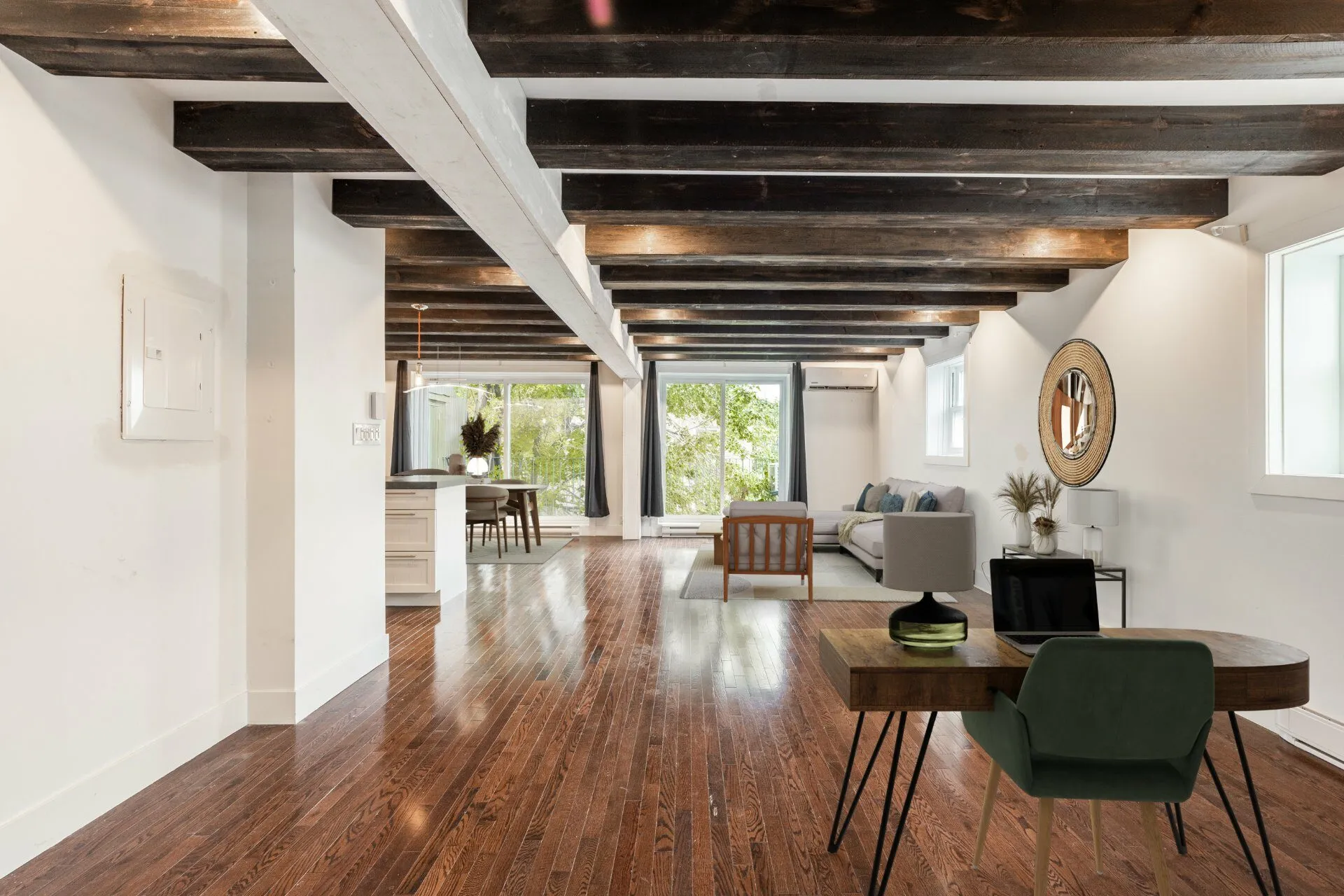 – Possibilité de faire intergénération ou de convertir en cottage. – Escalier intérieur relient les deux étage.- Plafond 9 pieds boiserie d’origine.- La décontamination du sol va être payée par le vendeur.