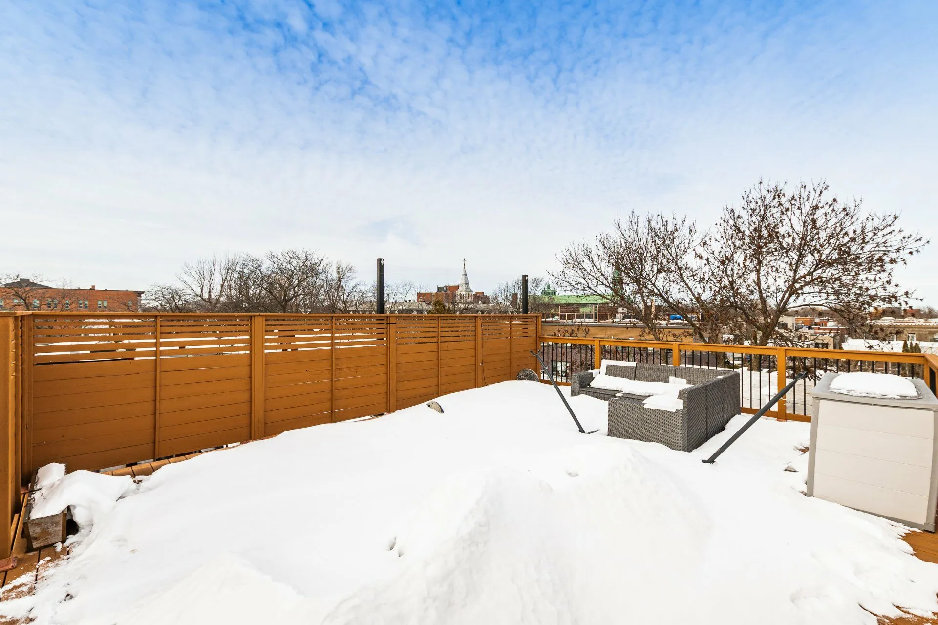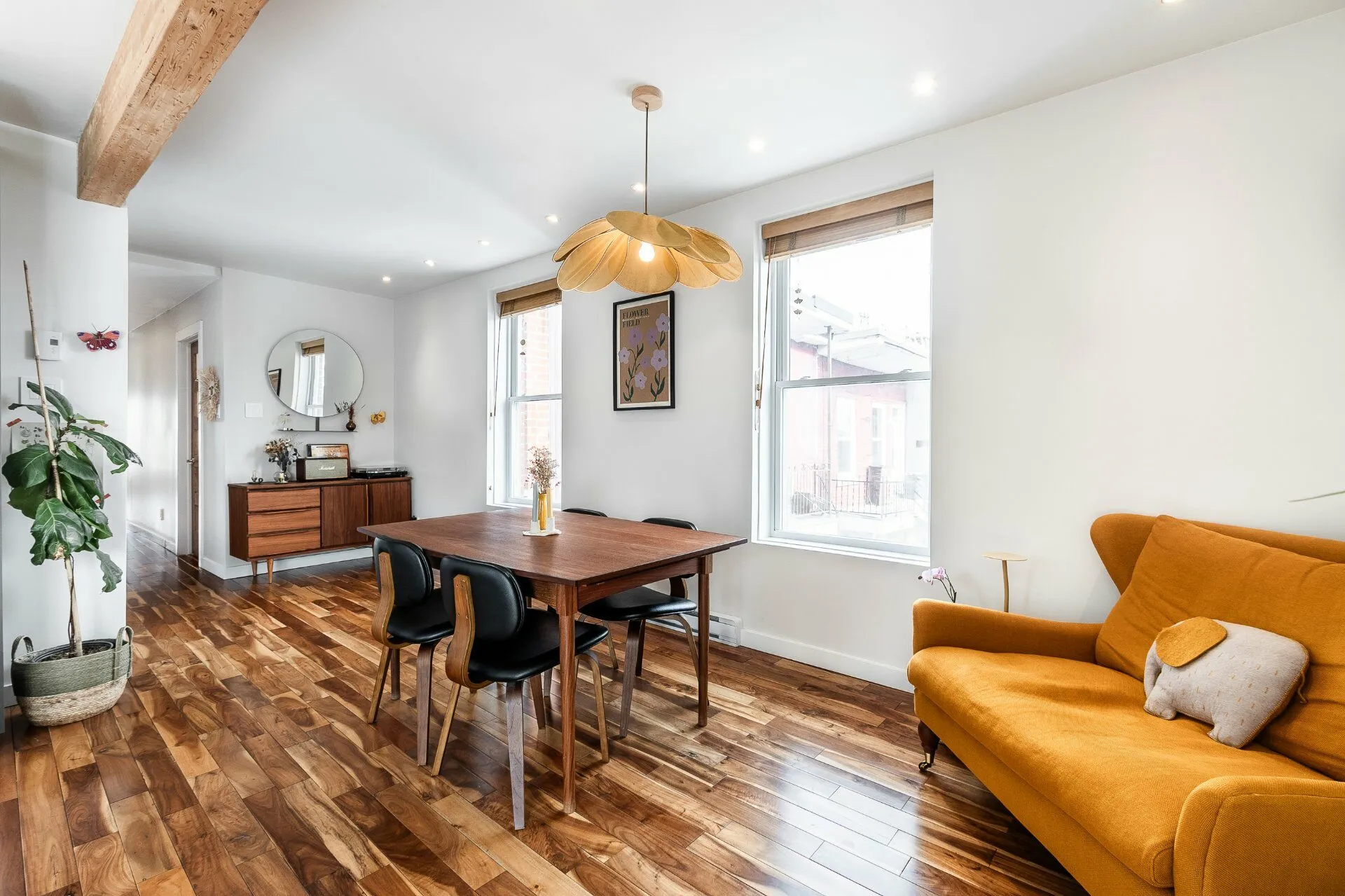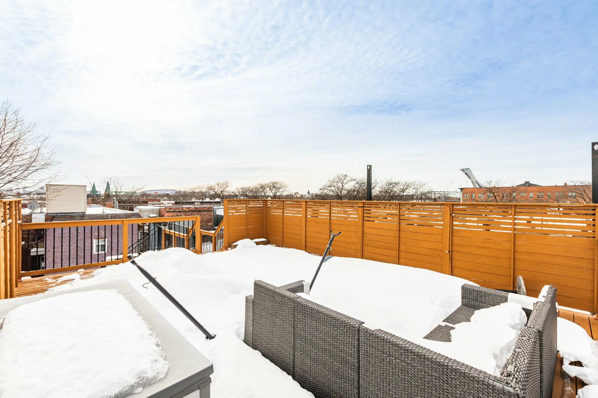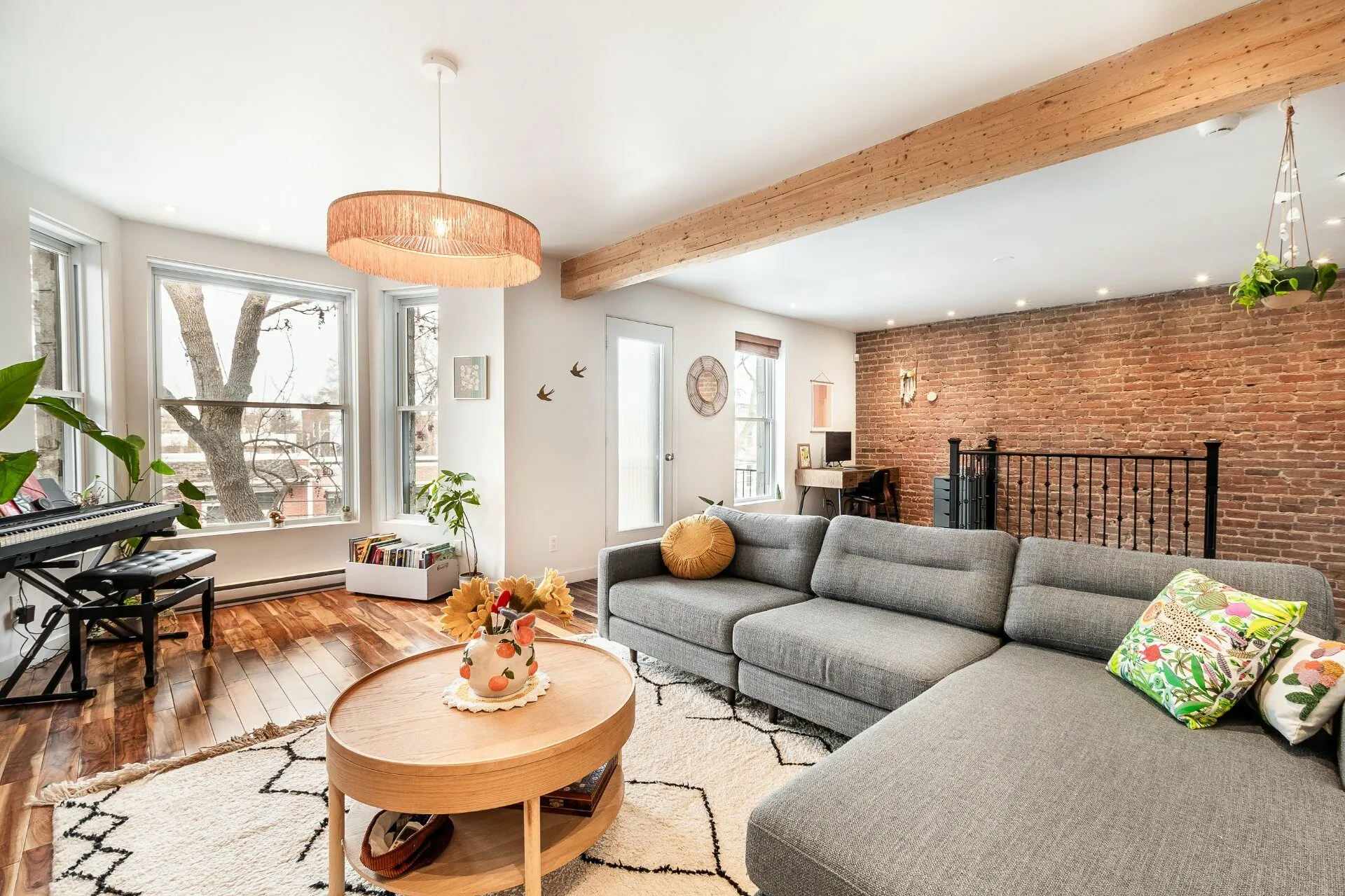 LUMINEUX, VASTE ET EXCEPTIONNEL. UNITÉ DE COIN. Fenestration sur trois façades. Spacieuse aire de vie au cachet unique avec mur de briques, plancher d'acacia et foyer au gaz. 3 chambres de bonnes dimensions dont la principale avec walk-in. Cuisine gourmet avec îlot central. Balcon avant, terrasse arrière et immense terrasse de toit privative d'environ 480 pi² avec vue. Propriété soigneusement entretenue située sur une rue calme à sens unique, dans un secteur familial recherché à proximité des écoles (Saint-Clément, Eulalie-Durocher), services, commerces (le marché Maisonneuve, la boulangerie Aube) et transports en commun.