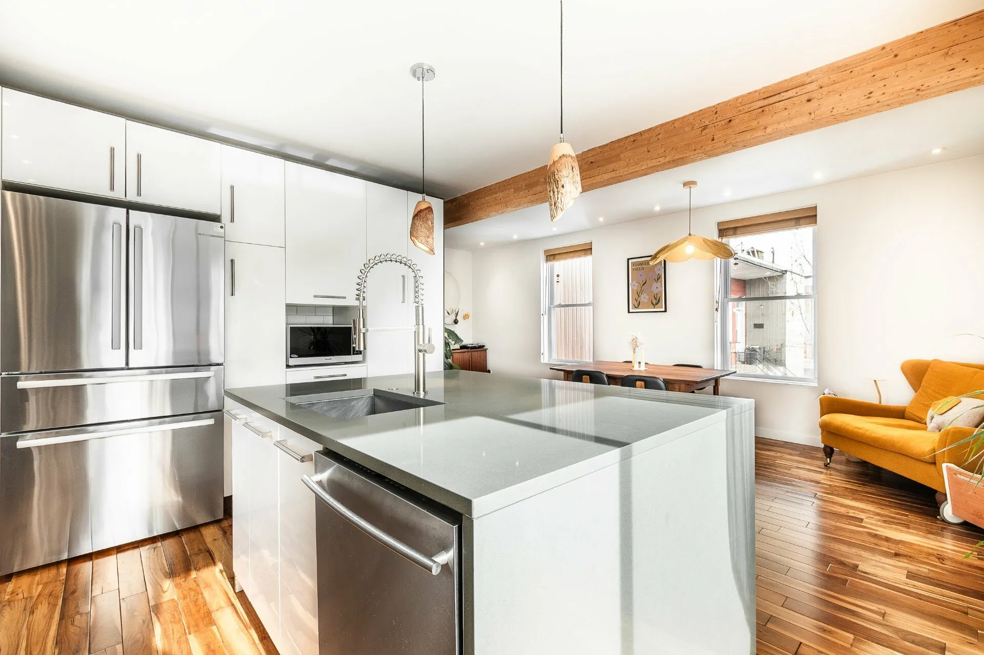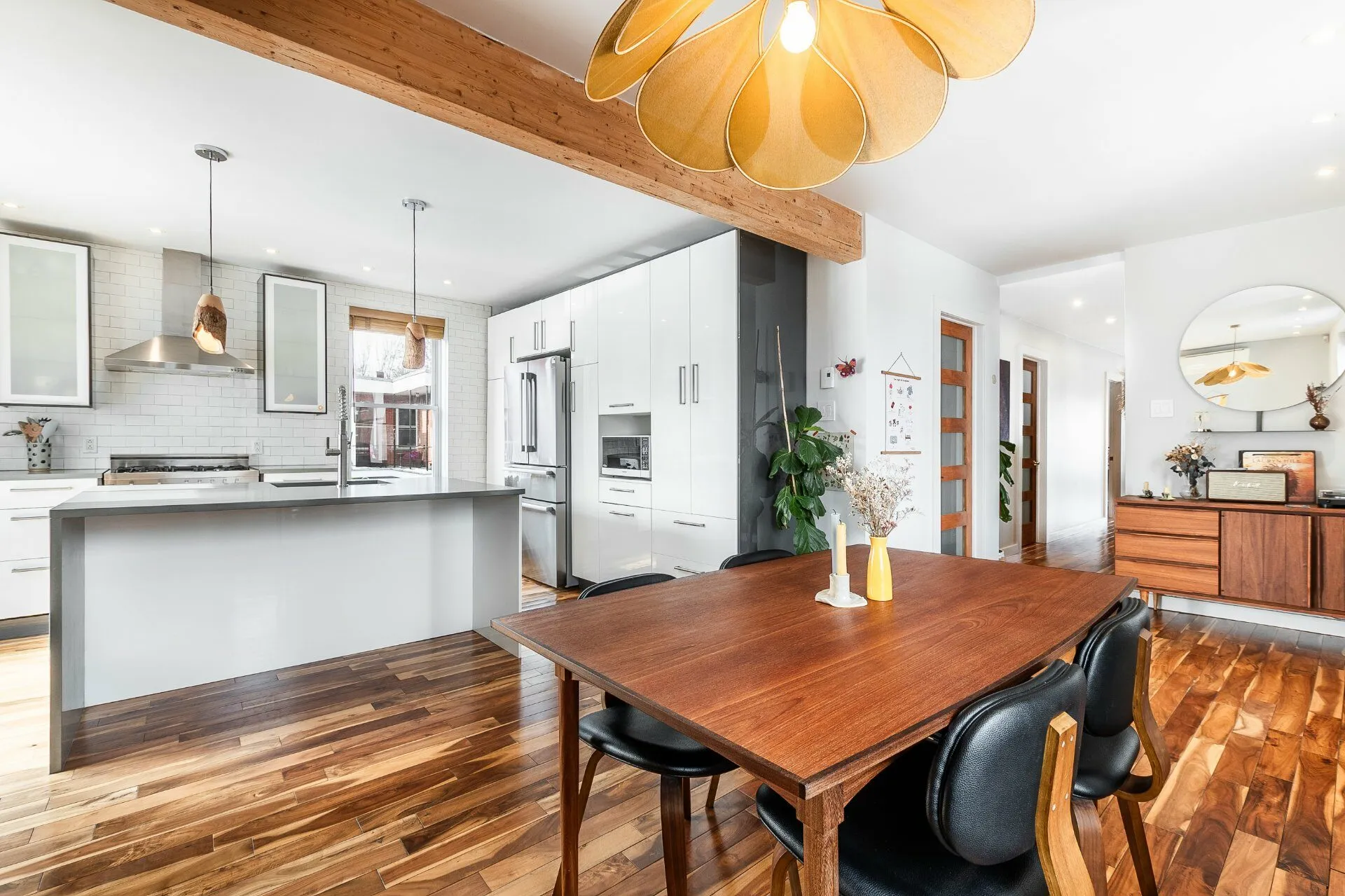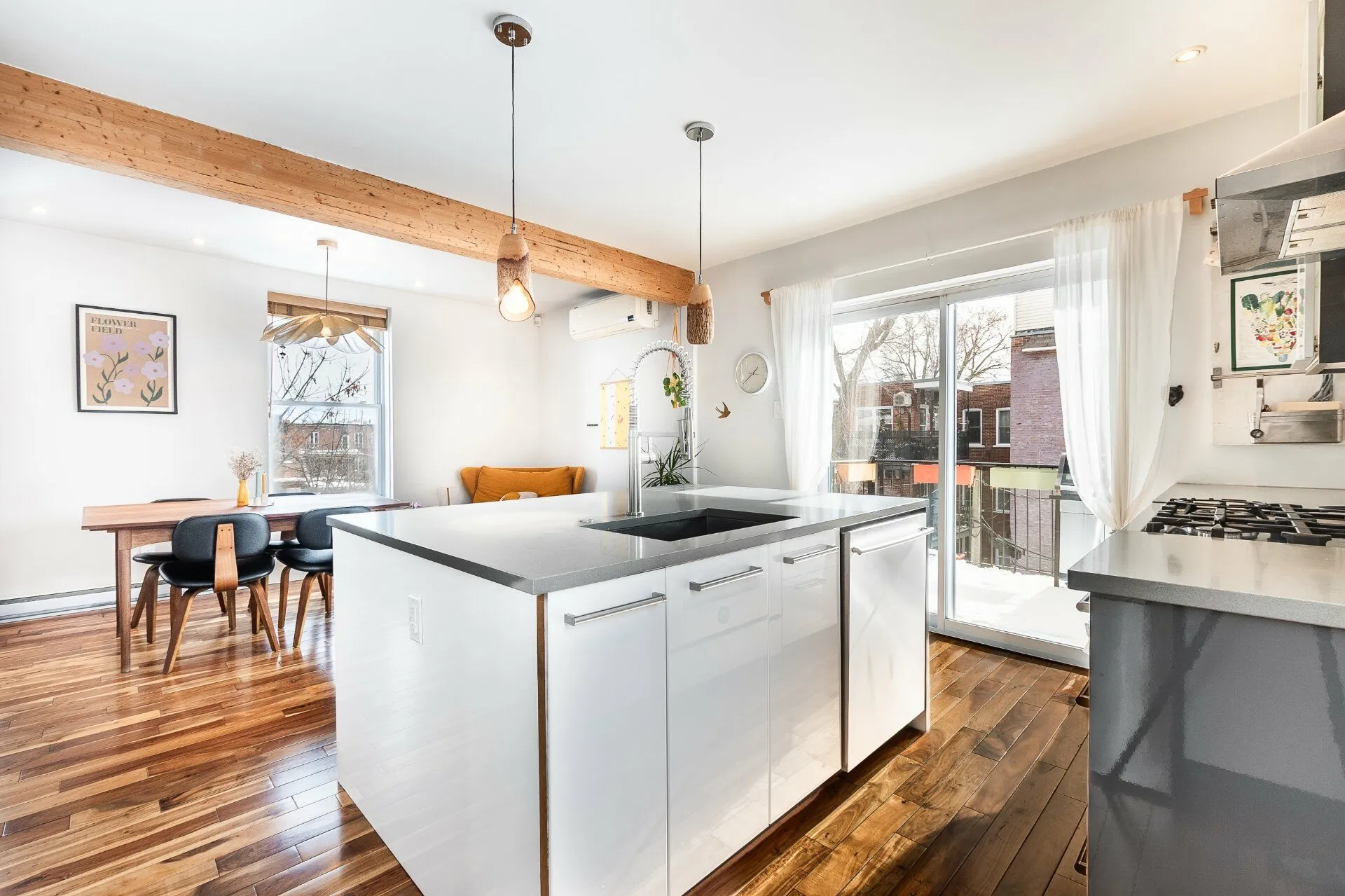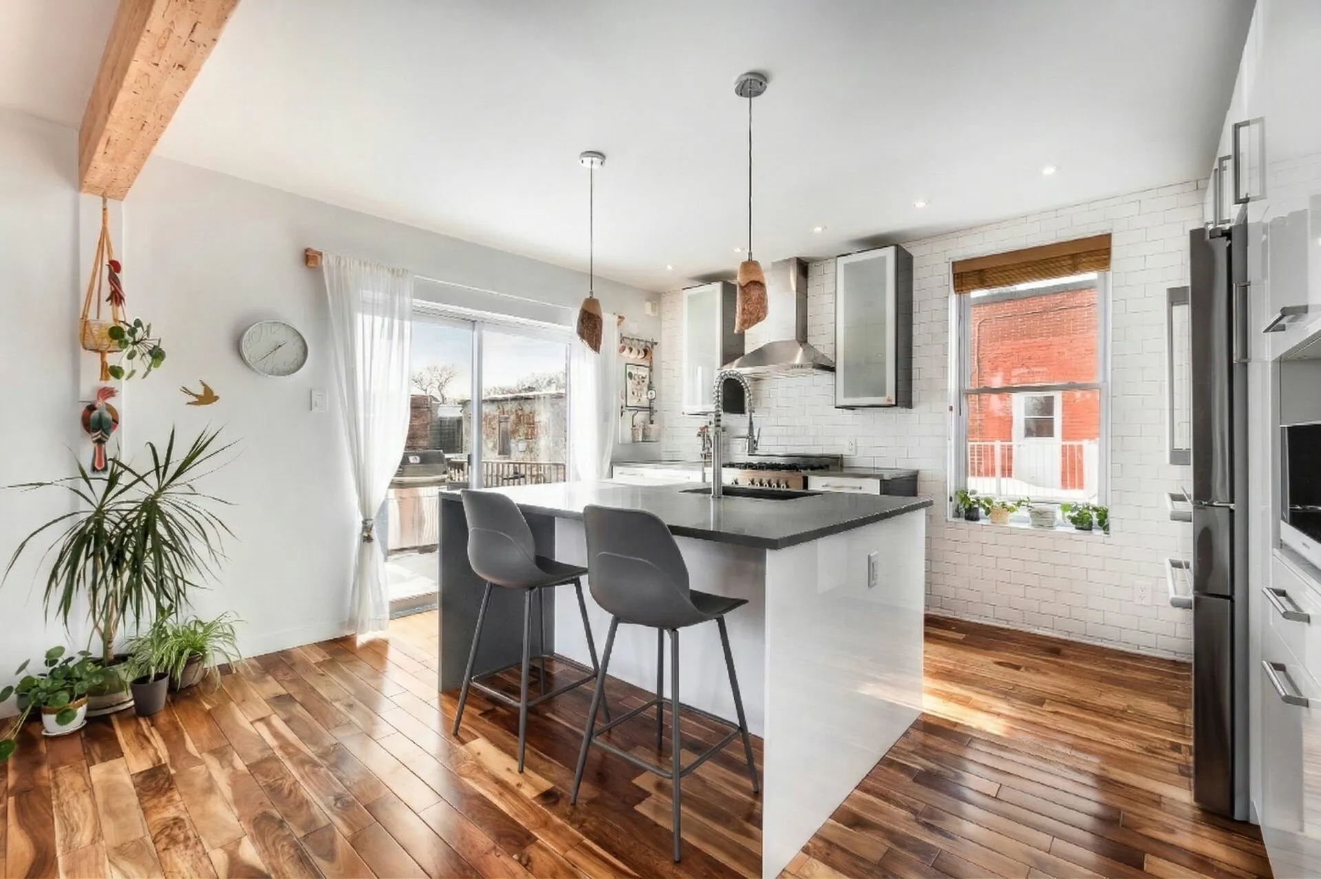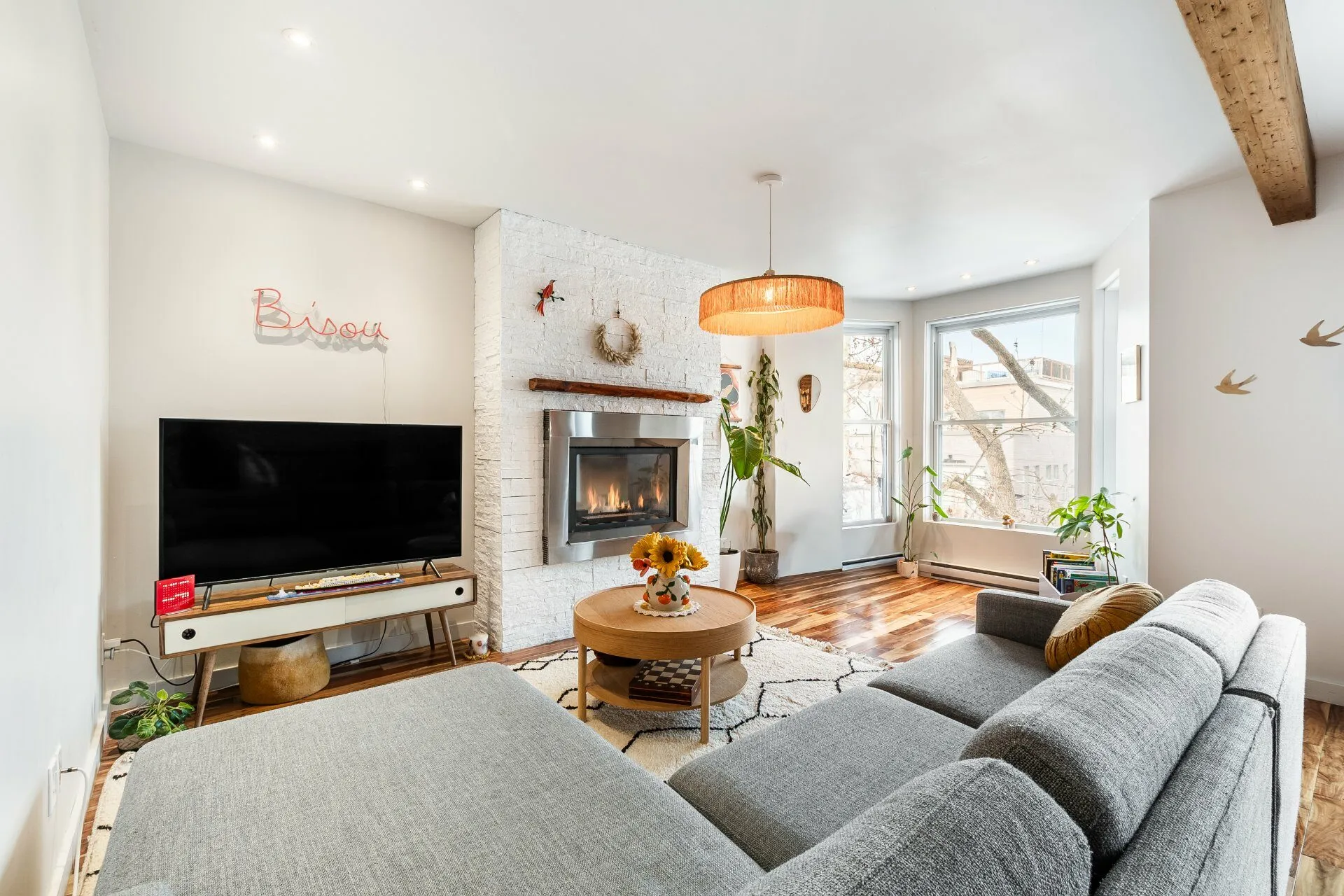 Inclusions : Meuble d'entrée intégré sur mesure (ADN Design), réfrigérateur Bosch (2025), cuisinière au gaz, lave-vaisselle, hotte de cuisine, laveuse. sécheuse (2021). Foyer au gaz, chauffe-eau (2024), thermopompe murale (et télécommande), gradateurs d'éclairage (not