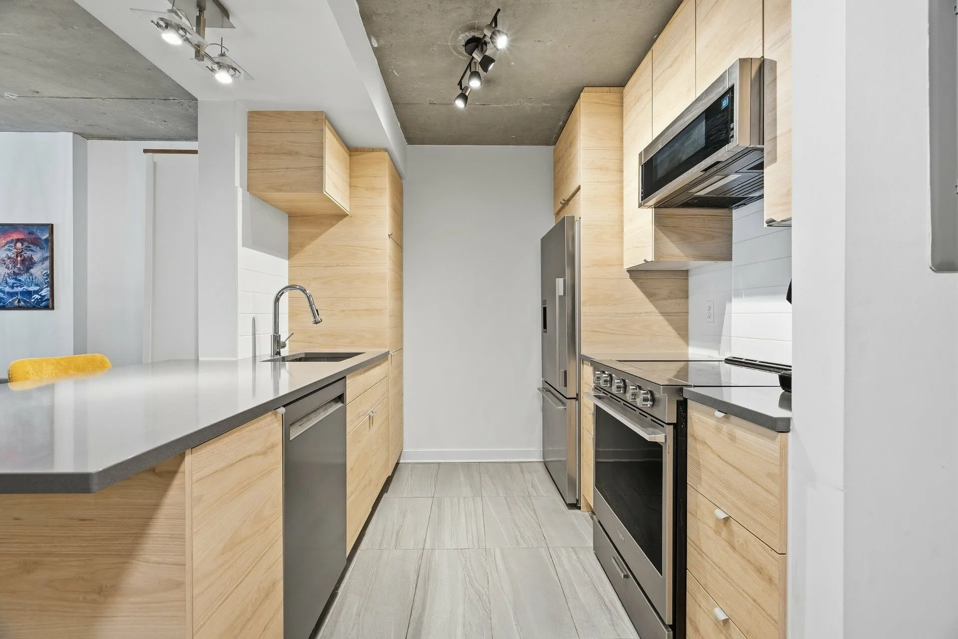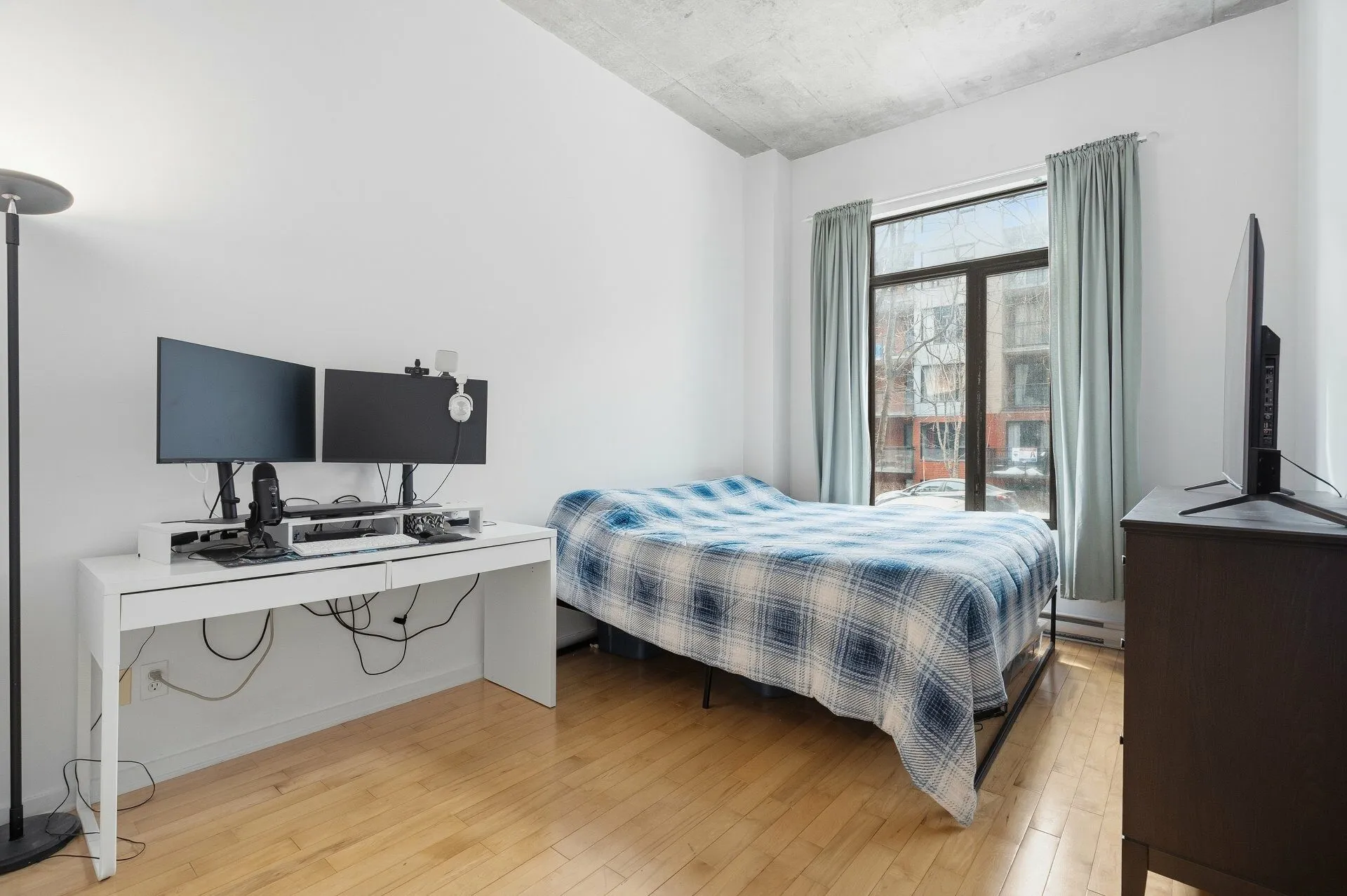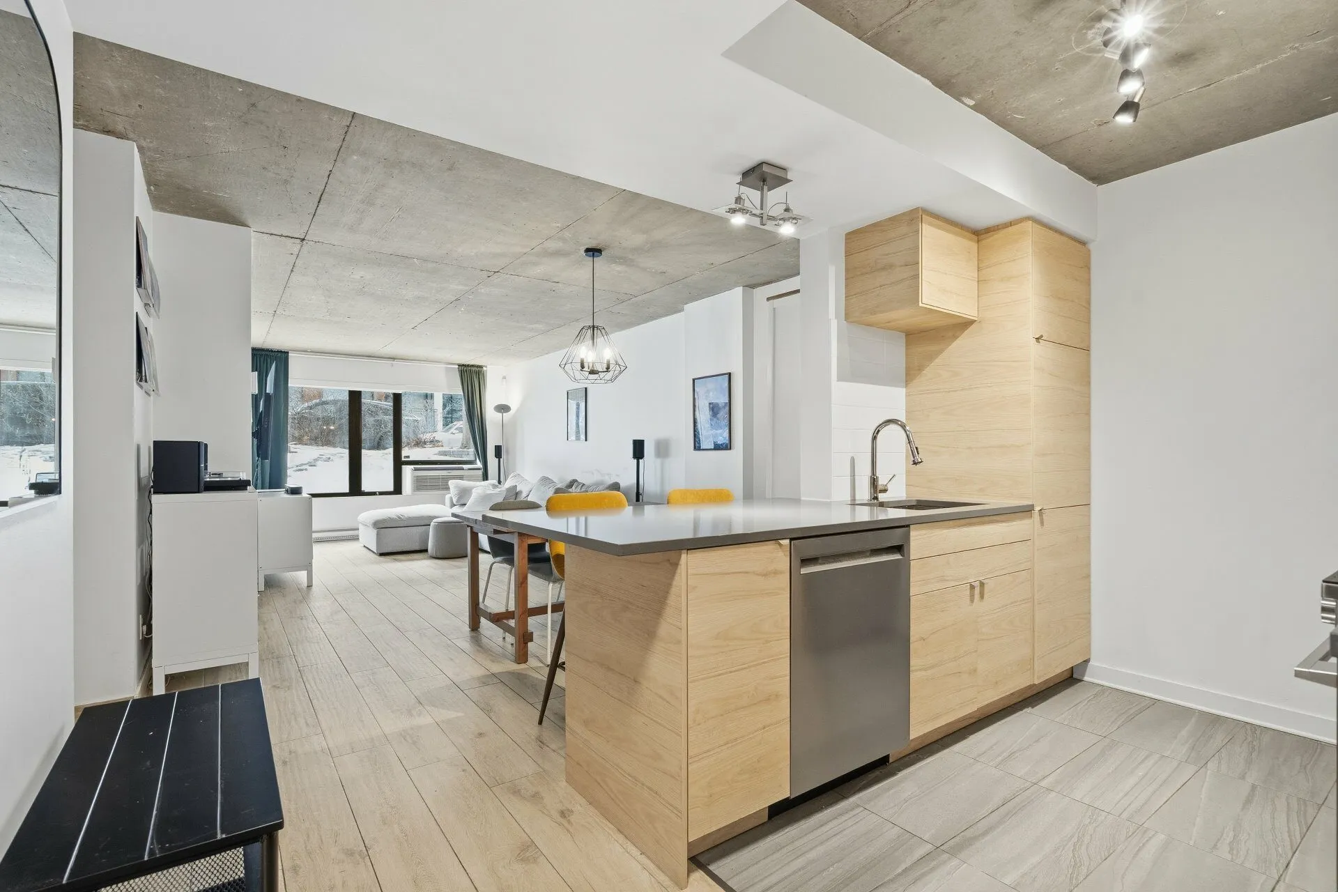 CONDO MODERNE ET CONVIVIAL. Espace aire ouverte sur 2 niveaux. 2 chambres à coucher fermées. Salle de bain récemment rénové avec bain podium et douche vitré indépendante. Grandes fenêtres architecturales. Plafonds de béton - insonorisation supérieure. Garage privé + locker. Ascenseur. Localisation de choix: à 450 mètres du métro Papineau, du pont Jacques-Cartier et des meilleures adresses du quartier.