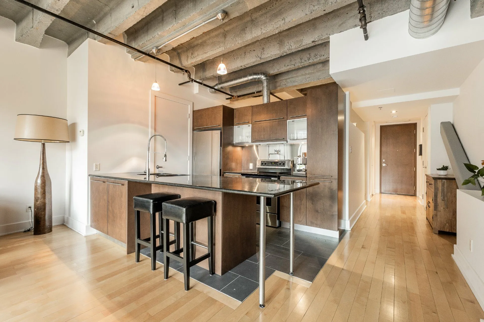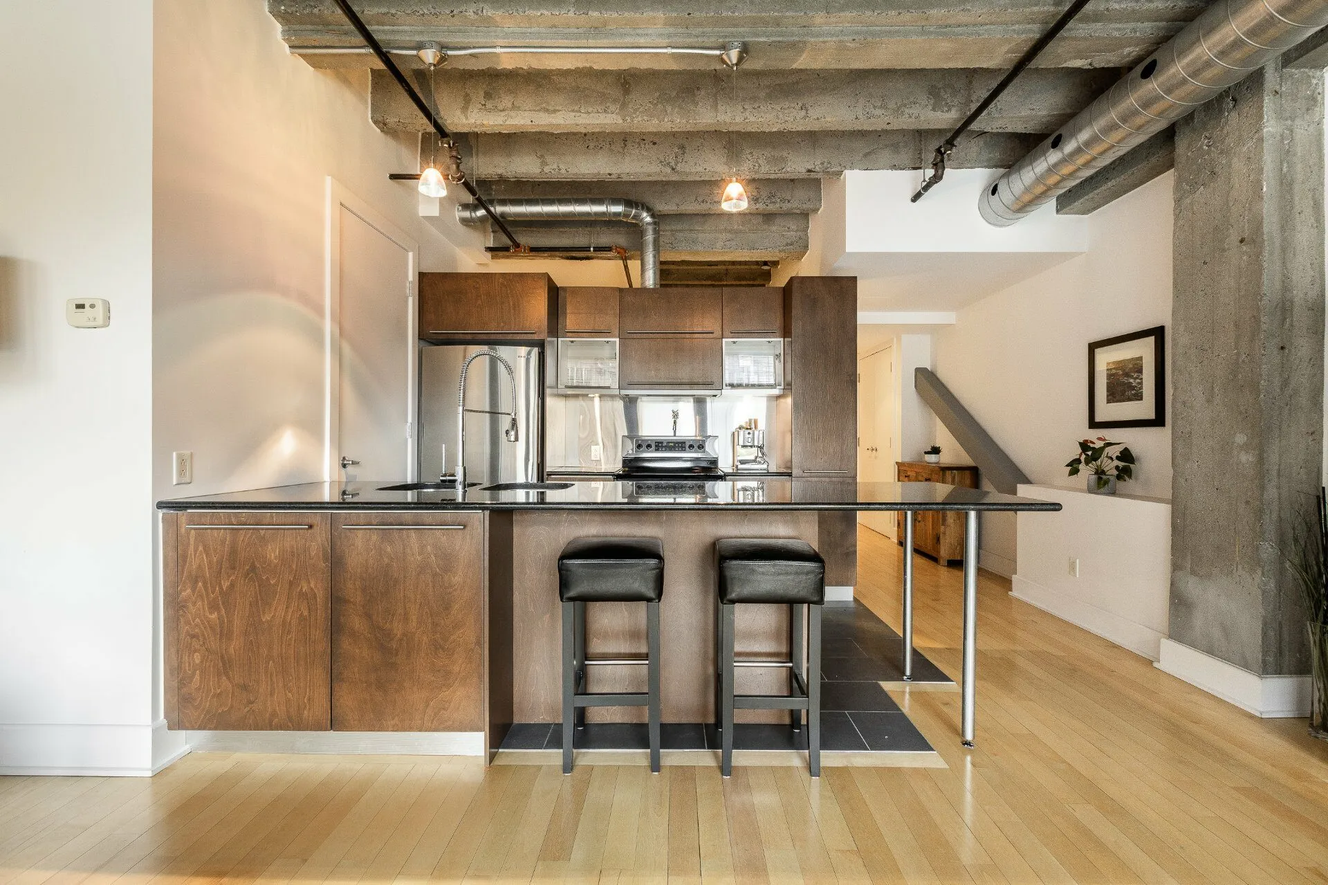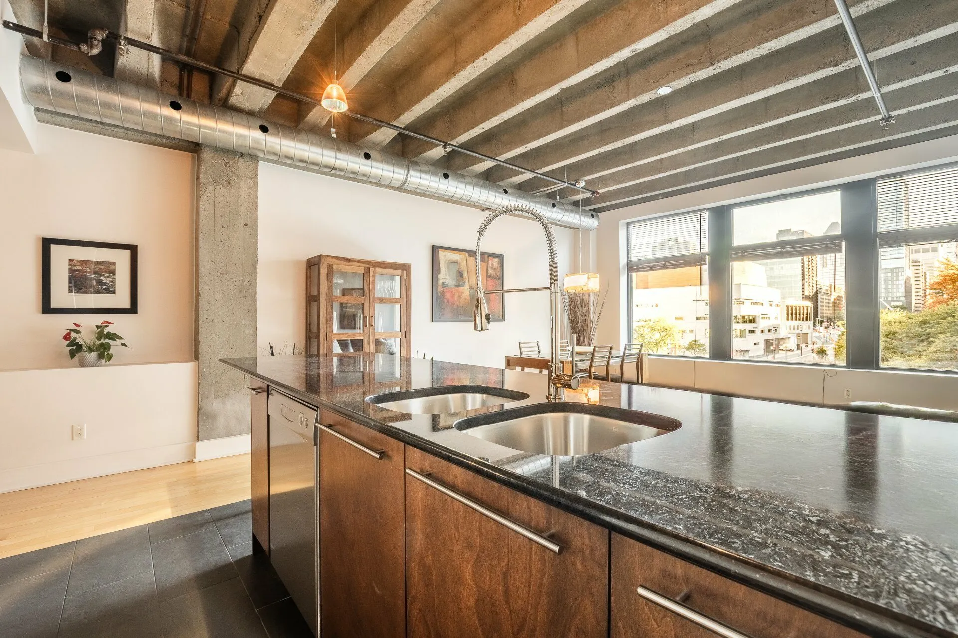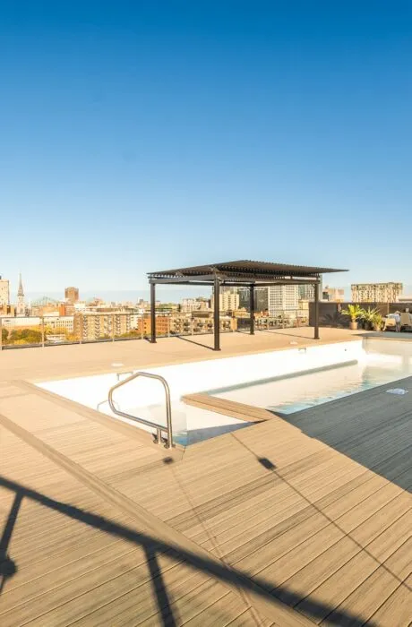 CONDO D'EXCEPTION AVEC VUE DÉGAGÉE - FACE AU PARC L'ESPLANADE. Agencement des pièces optimal. Espaces de vie spacieux et confortables. Luminosité remarquable - plafonds de 11 pieds en béton et fenêtres architecturales. Spectaculaire terrasse sur le toit avec piscine creusée et espace BBQ - récemment restaurés - l'une des plus belles vues sur la ville. Salle d'entrainement. Sécurité 24/7 (portier). À deux pas de deux stations de métro et Bixi. Galerie marchande sous-terraine avec entre autres un IGA. À distance de marche de la Place des arts, de la salle sympathique OSM, du Mont-Royal et du Centre ville. Bienvenue au Loft des Arts
