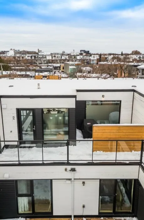 UNITÉ CONTEMPORAINE SUR DEUX ÉTAGES - un projet signé ADHOC Architectes. Espaces de vie à aire ouverte. Luminosité remarquable - fenêtres architecturales. Généreux séjour avec plafond double hauteur. Cuisine gourmet idéale pour recevoir. 2 chambres à coucher fermées. Spacieuse salle de bain avec douche et baignoire indépendante. Terrasse privée. Insonorisation supérieure. Mobiliers intégrés dans plusieurs pièces. Matériaux nobles et de qualité. Espace de rangement additionnel. Emplacement clé: à distance de marche du métro et du marché Jean-Talon, du parc Jarry et des commerces de la charmante Plaza St-Hubert.