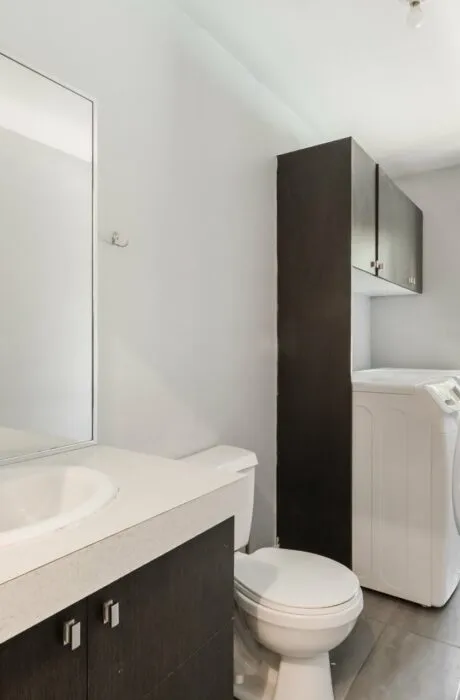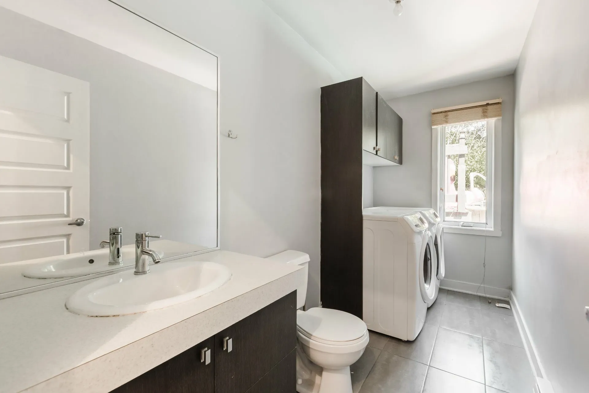 Le garage pratique offre à la fois rangement et stationnement pour un véhicule de bonne dimension, tandis que la salle de lavage, intelligemment intégrée à la salle d'eau, facilite le quotidien.