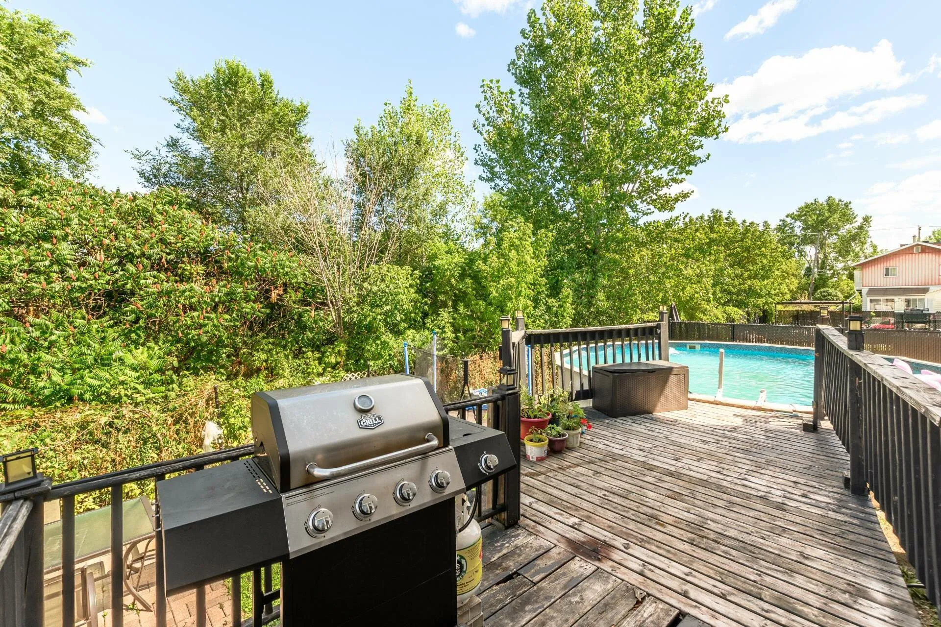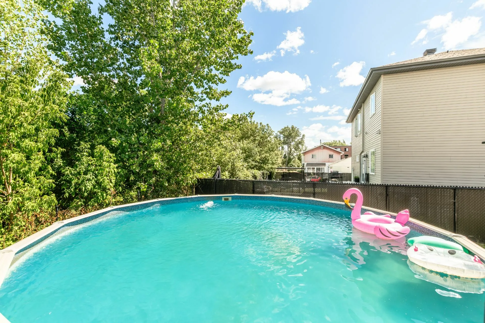À l'extérieur, la cour arrière verdoyante est un véritable terrain de jeu pour toute la famille : vaste espace de verdure, grand potentiel d'aménagement et une piscine hors-terre pour profiter pleinement des beaux jours d'été.