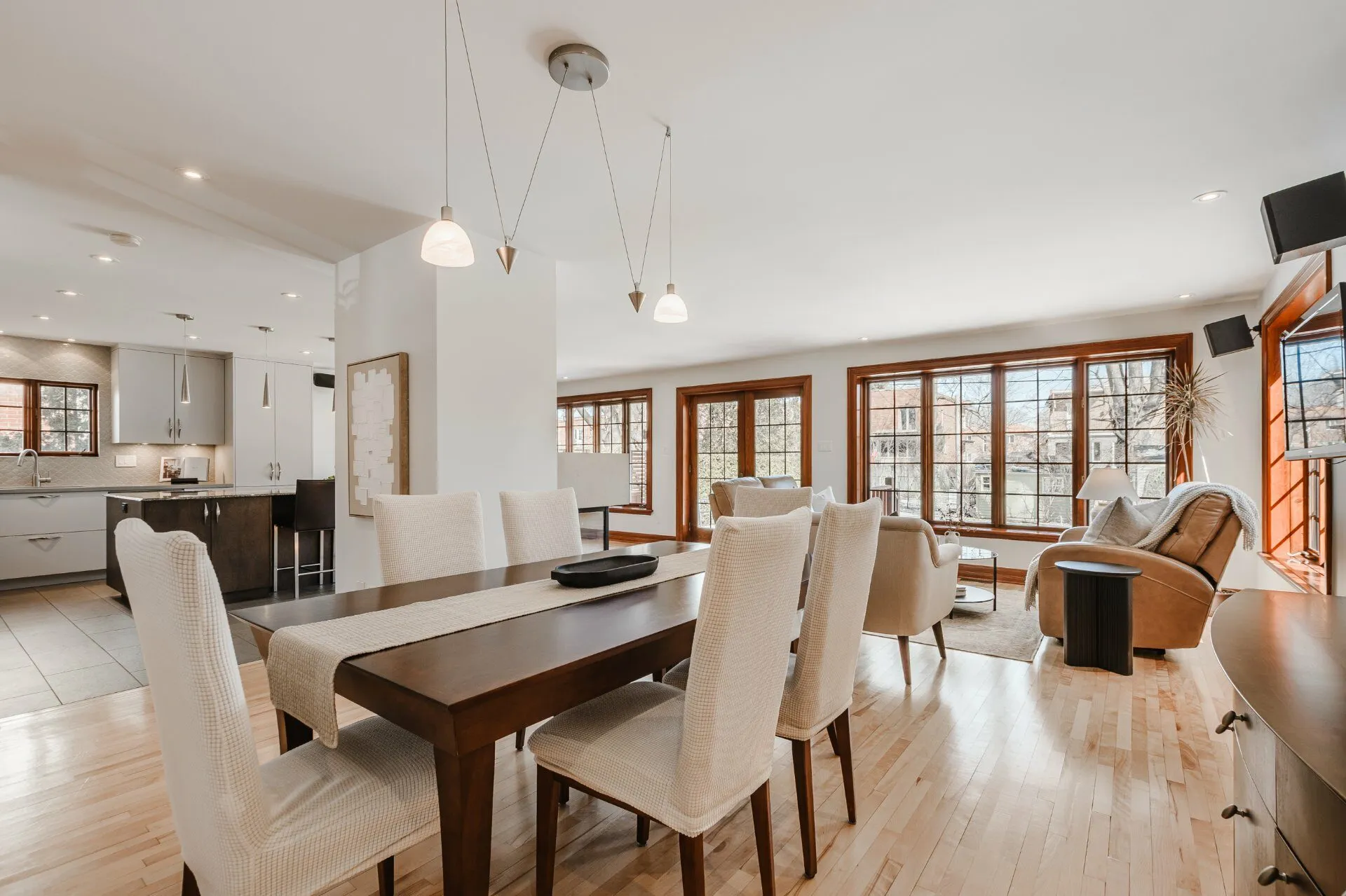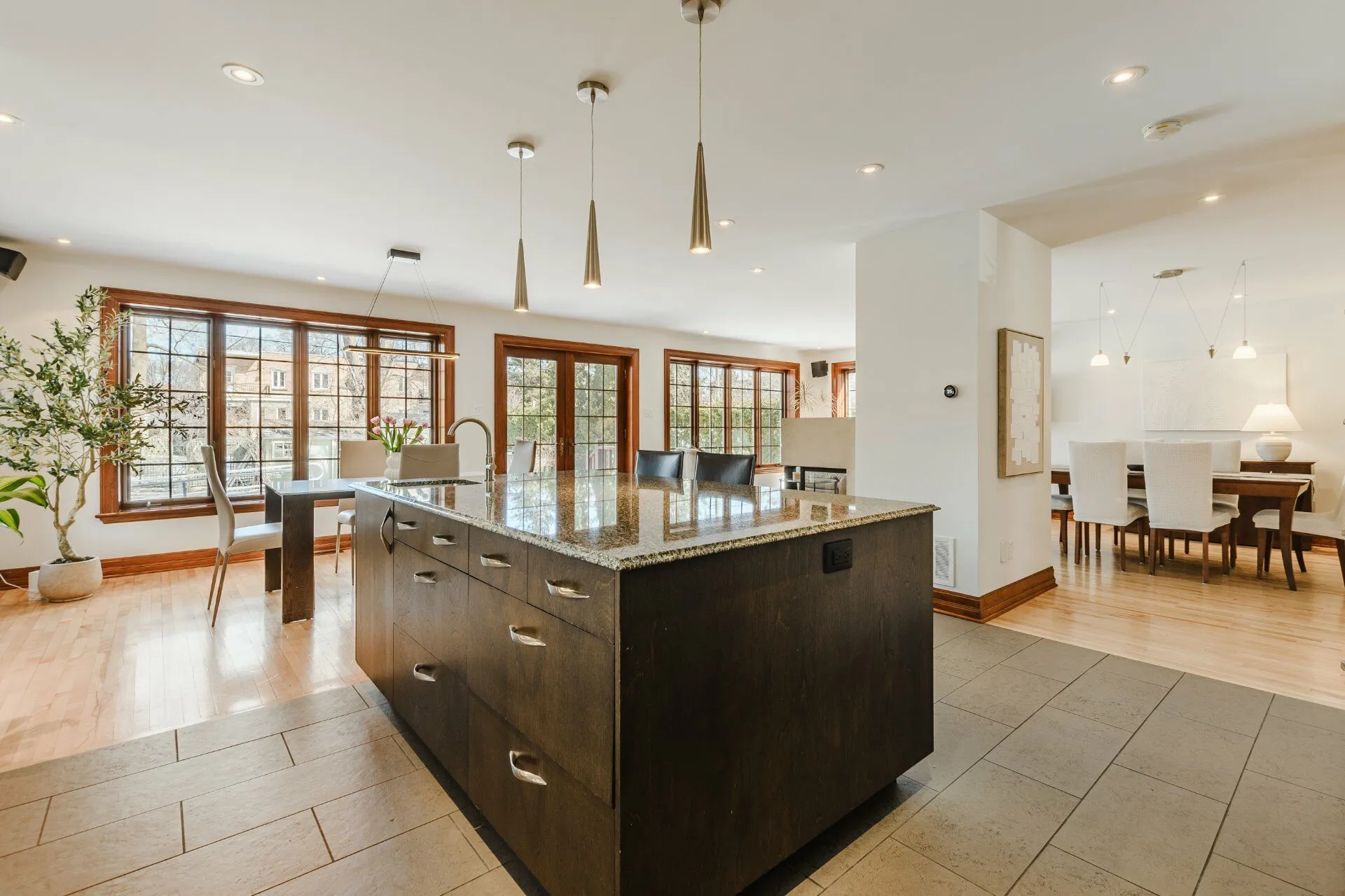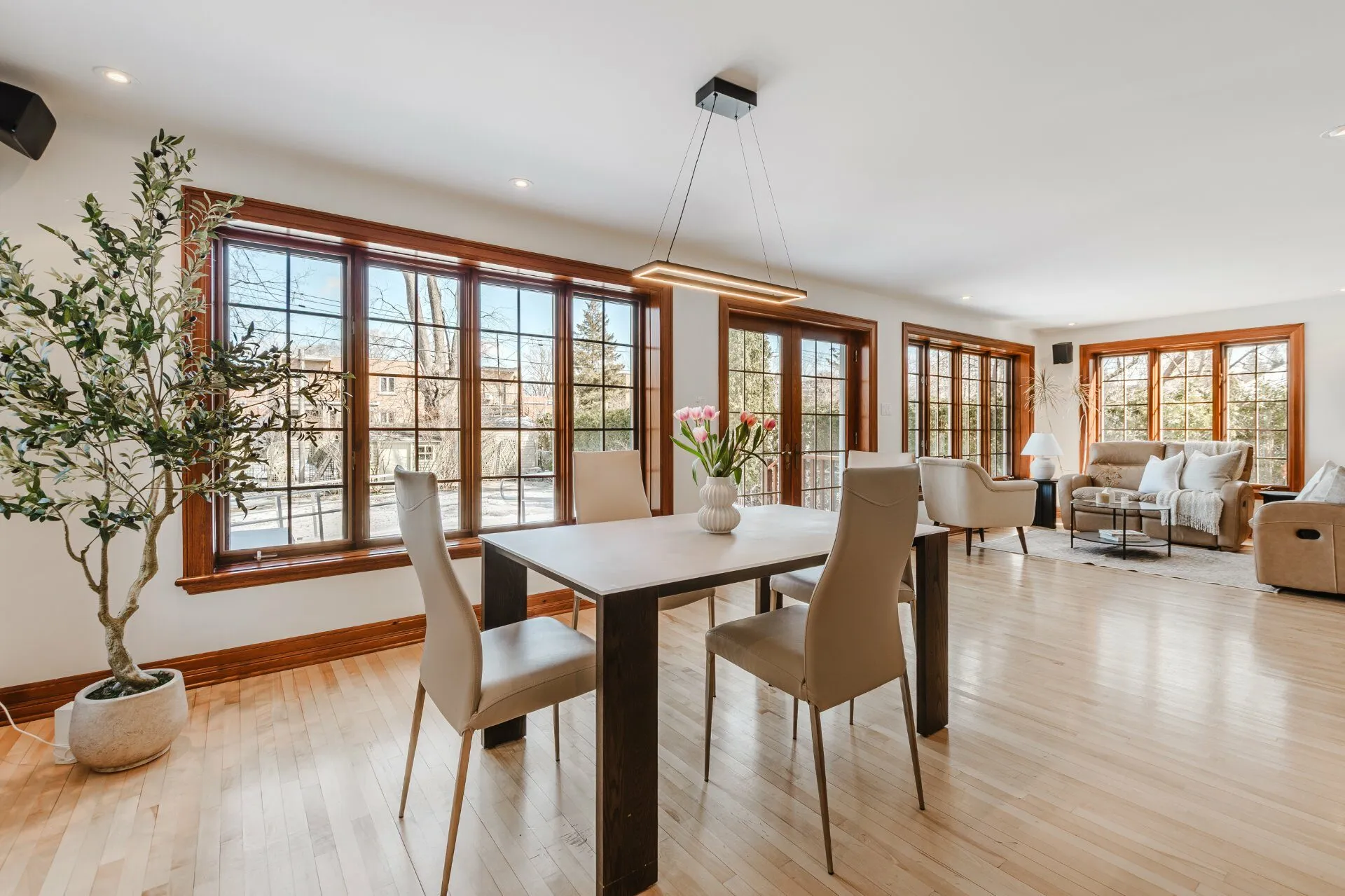 SOMPTUEUSE ET LUMINEUSE MAISON UNIFAMILIALE. Impressionnante fenestration - luminosité remarquable. 5 chambres à coucher + possibilité de 6. Chaleureux espaces de vie à aire ouverte avec 2 foyers au gaz, jolies boiseries et planchers de bois. Cuisine moderne avec îlot central. Charmante mezzanine pouvant servir de bureau ou de coin lecture. 2 salles de bains + 1 salle d'eau. Salle de lavage. Salle familiale. Allées de stationnements. Spacieuse cour arrière intime avec terrasse. Un emplacement convoité dans un quartier paisible et familial, à proximité du métro, des écoles, des parcs et des boutiques. Une propriété unique à visiter!