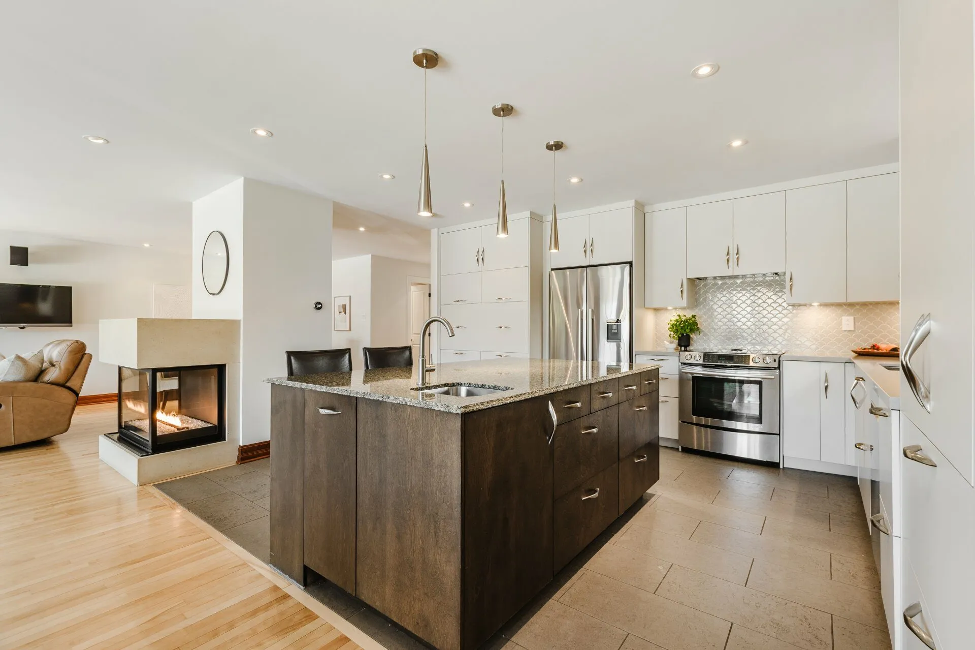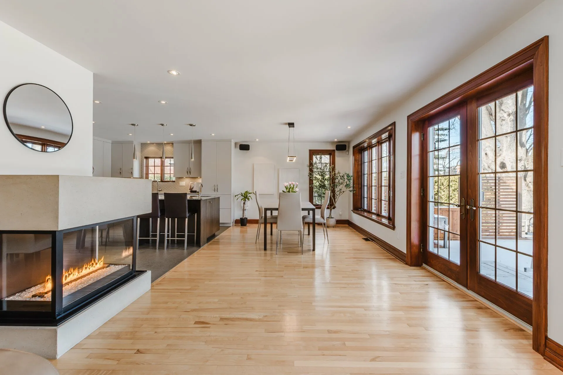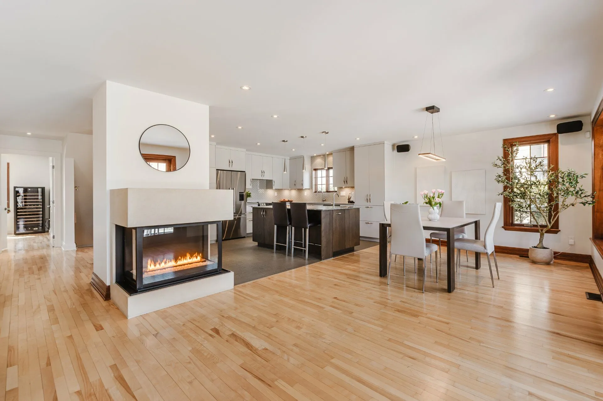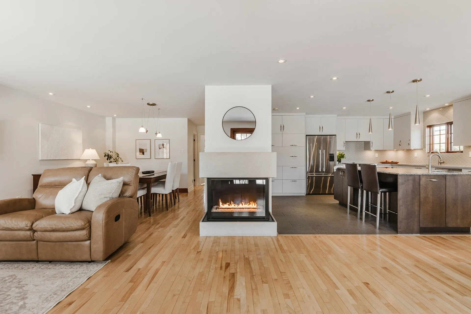 SOMPTUEUSE ET LUMINEUSE MAISON UNIFAMILIALE. Impressionnante fenestration - luminosité remarquable. 5 chambres à coucher + possibilité de 6. Chaleureux espaces de vie à aire ouverte avec 2 foyers au gaz, jolies boiseries et planchers de bois. Cuisine moderne avec îlot central. Charmante mezzanine pouvant servir de bureau ou de coin lecture. 2 salles de bains + 1 salle d'eau. Salle de lavage. Salle familiale. Allées de stationnements. Spacieuse cour arrière intime avec terrasse. Un emplacement convoité dans un quartier paisible et familial, à proximité du métro, des écoles, des parcs et des boutiques. Une propriété unique à visiter!
