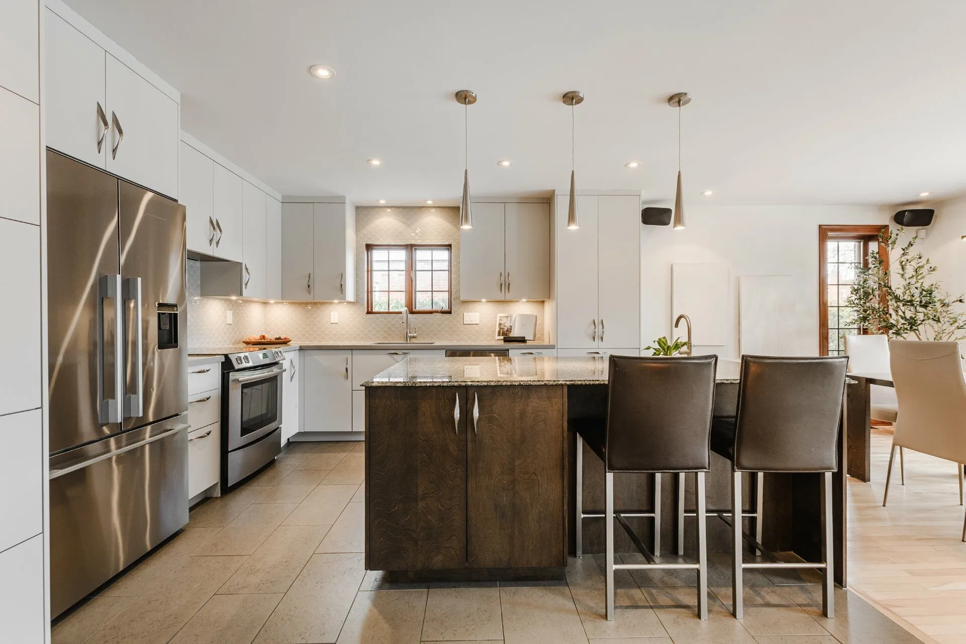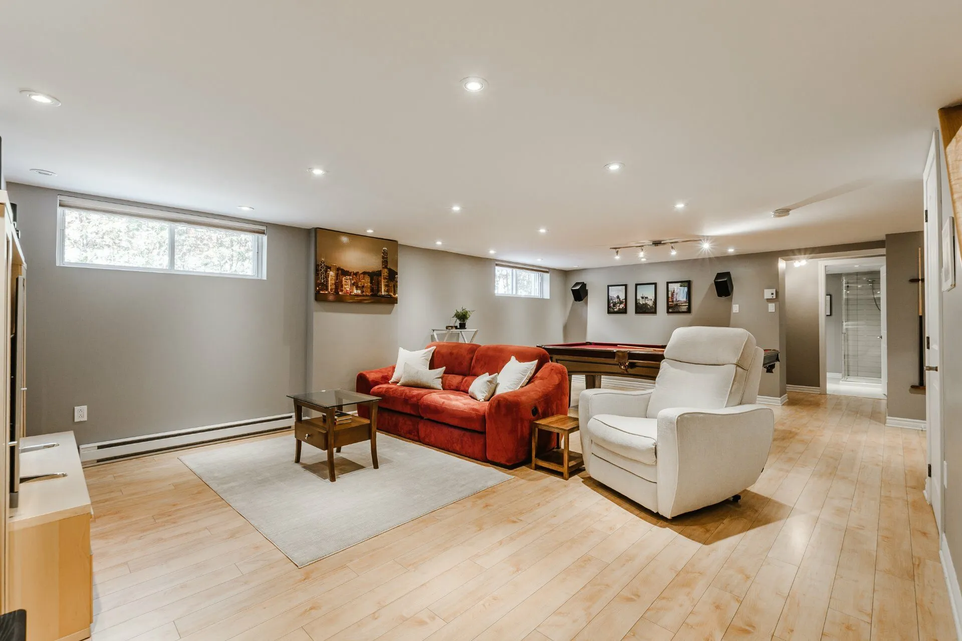 Inclusions : Table de billiard, hauts parleur et amplificateur Sonos, bancs d'ilot de cuisine, système d'alarme, aspirateur Central, congélateur au sous-sol, électros, support mural pour télévision.