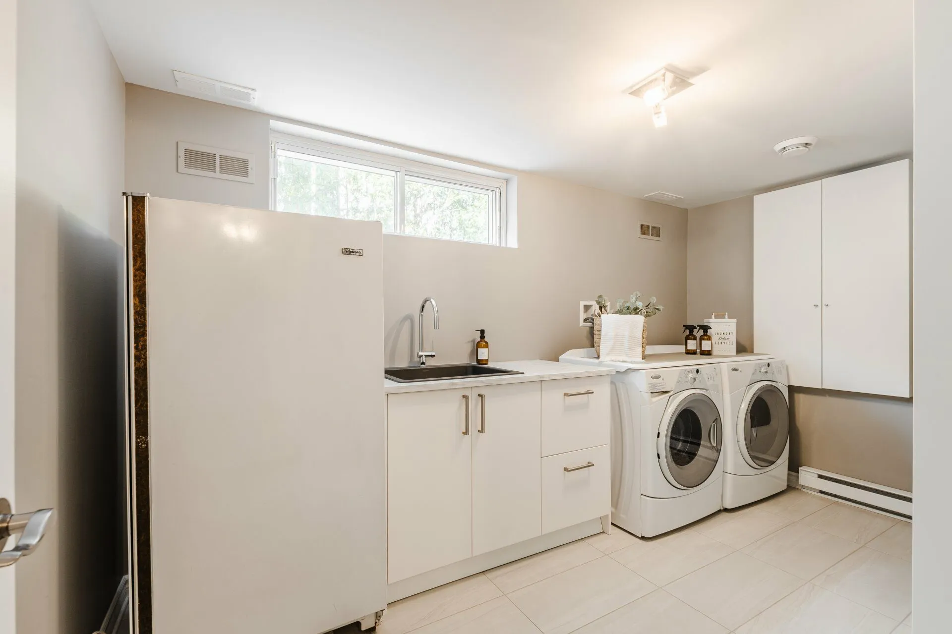 Exclusions : Rideaux chambre principale et salon, cellier, BBQ, télévisions, batterie portative pour sump pump, étagères atelier, laveuse, sécheuse.