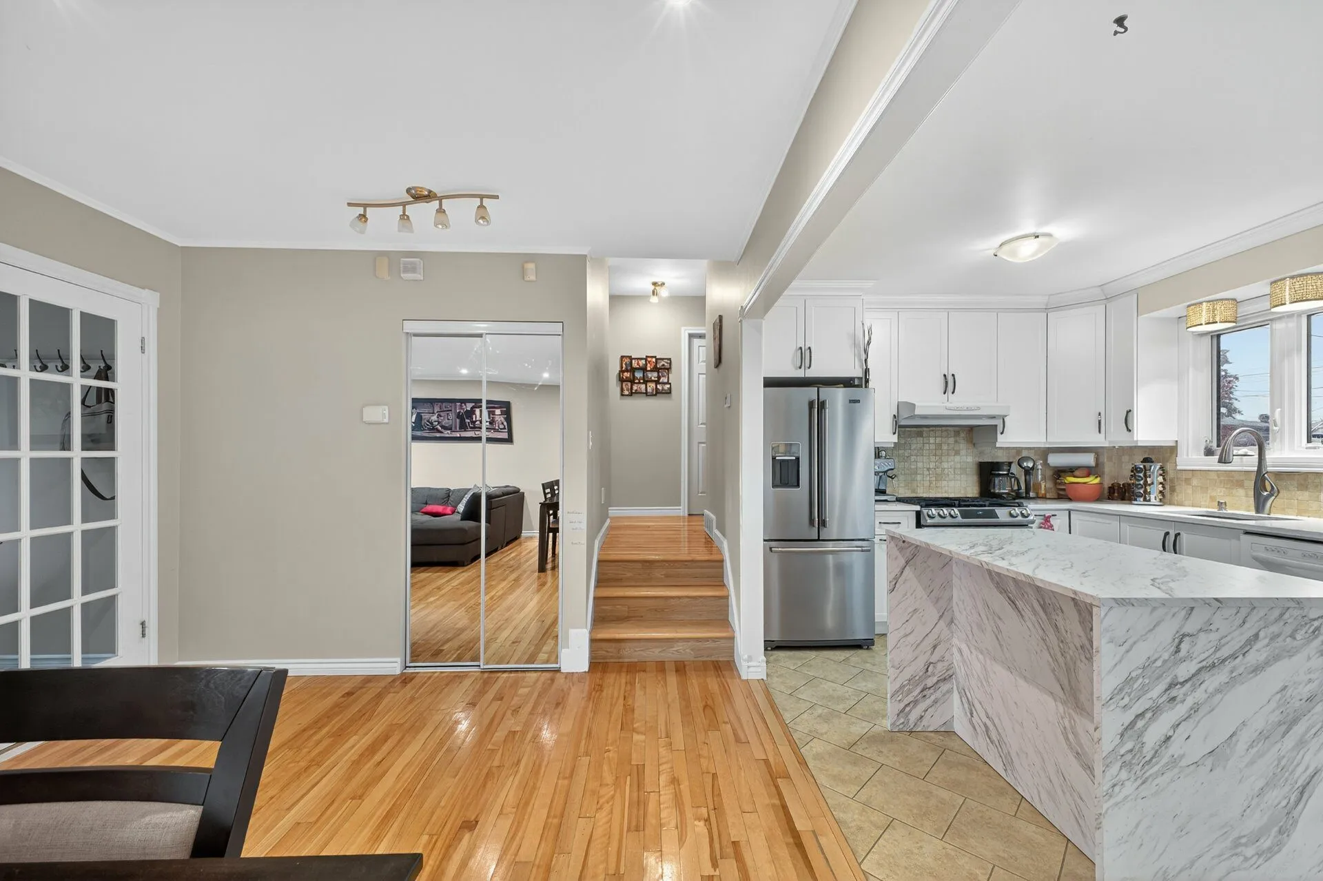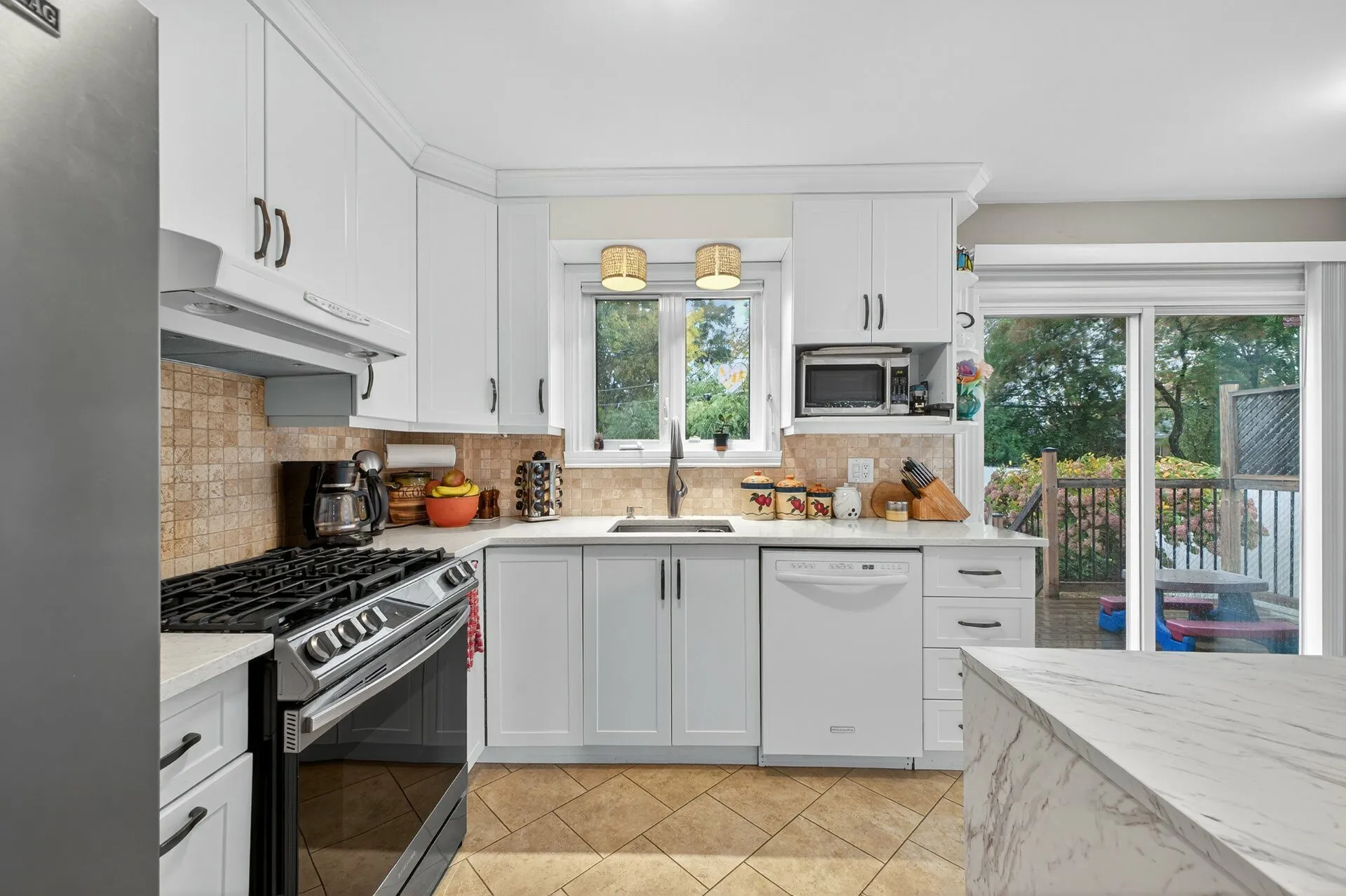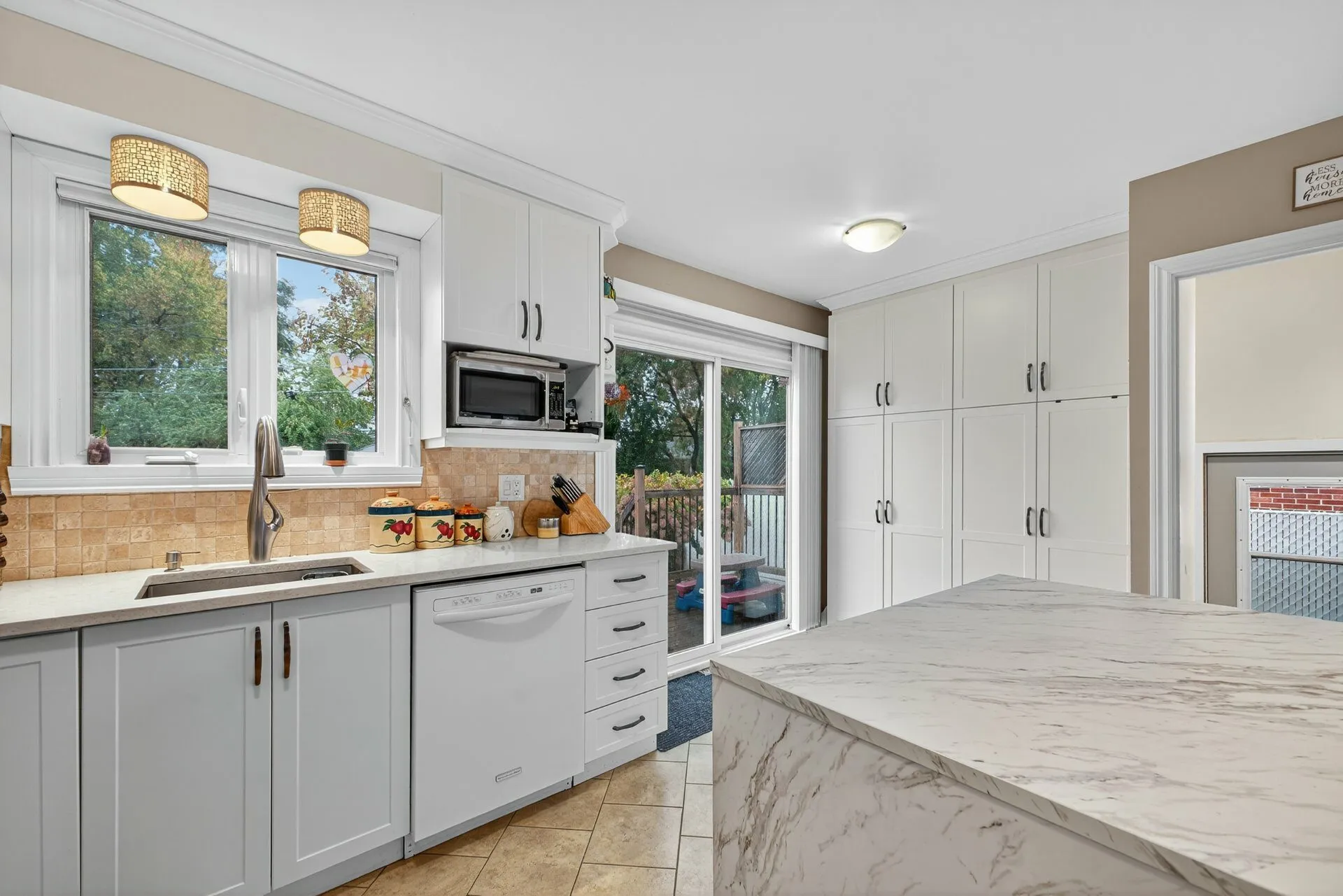 Inclusions : Cuisinière à gaz, lave-vaisselle, îlot de cuisine, stores, aspirateur central et accessoires.