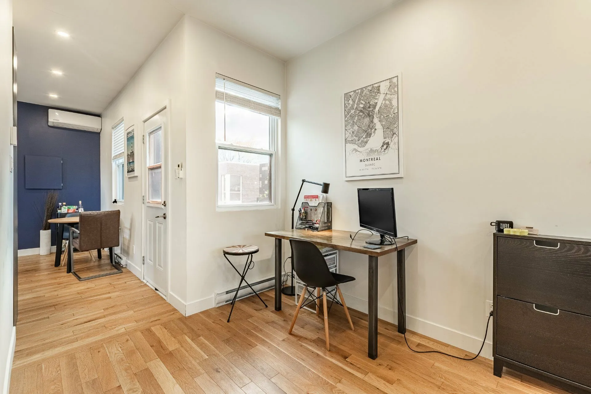 À noter qu'il s'agit d'une copropriété horizontale puisque le triplex partage un lot cadastral (une cour) avec un quadruplex ( 1133-1135, rue Marie-Anne E.) et un cottage (4356, rue de la Roche avec usage exclusif de la cour) n'y a pas d'assurance commune ni de frais de condo car les 3 bâtisses n'ont aucune partie commune. Pour ces raisons, le choix du notaire devra être choisi d'un commun accord.